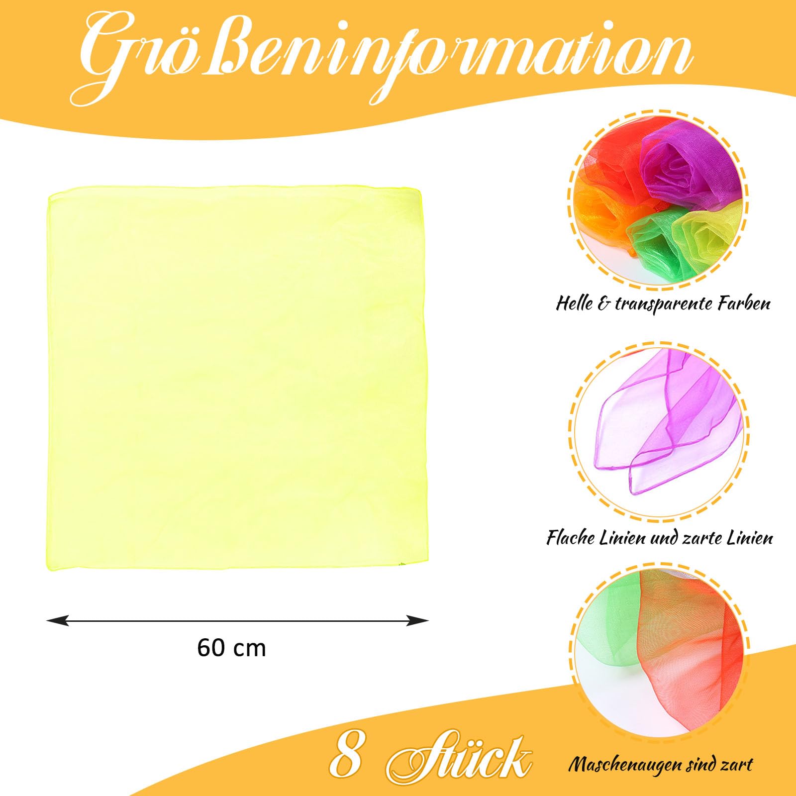 Õhukesed tantsimis- või pearätikud kollased (8tk komplektis, 60x60cm)