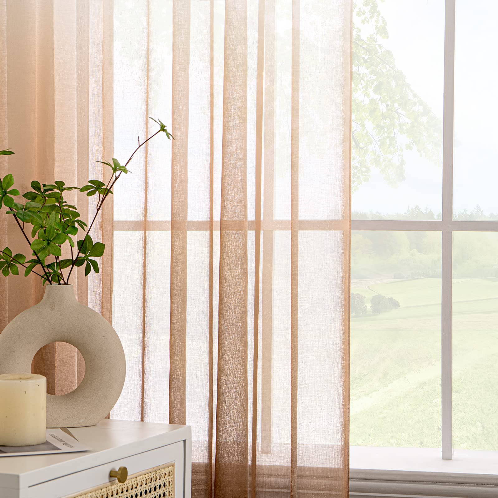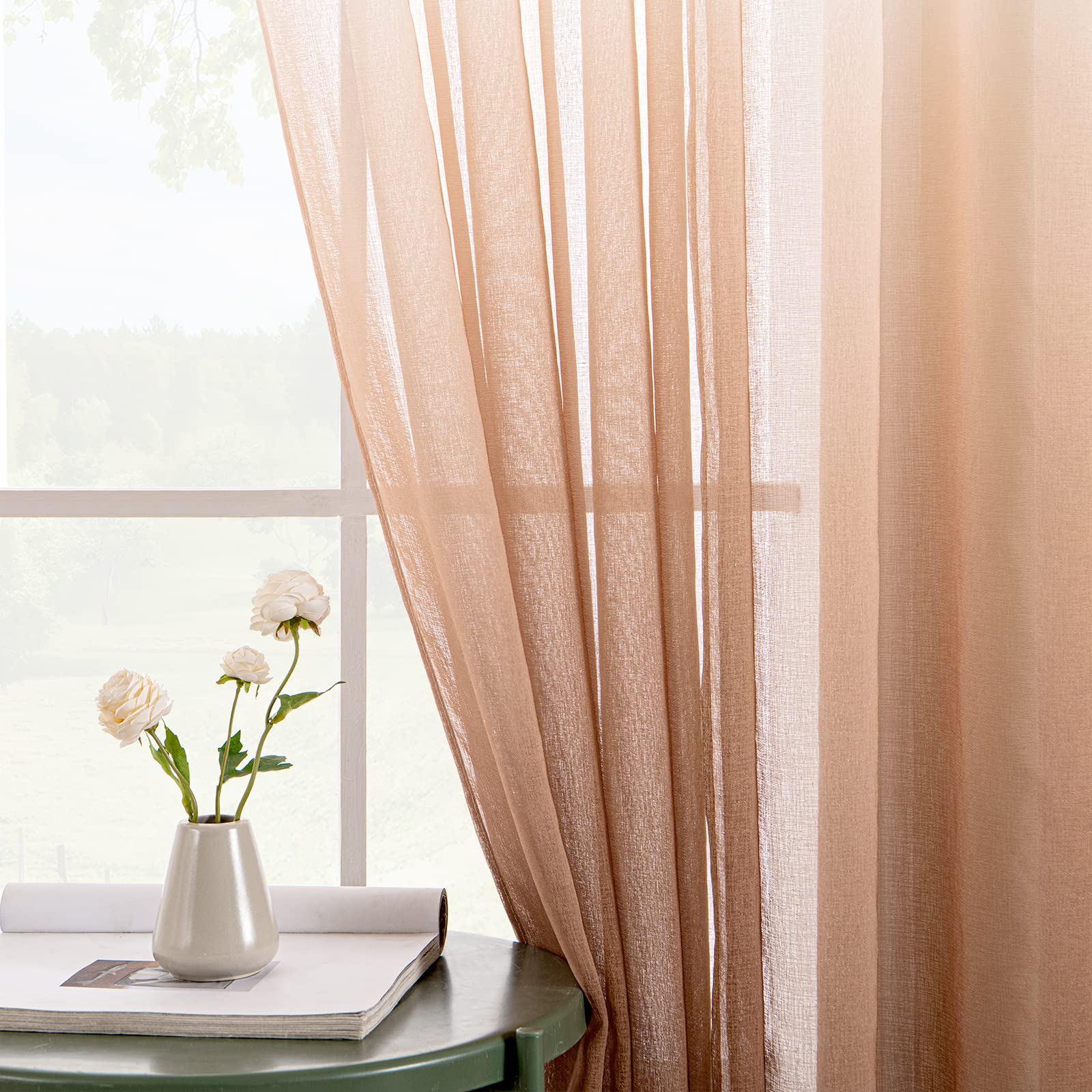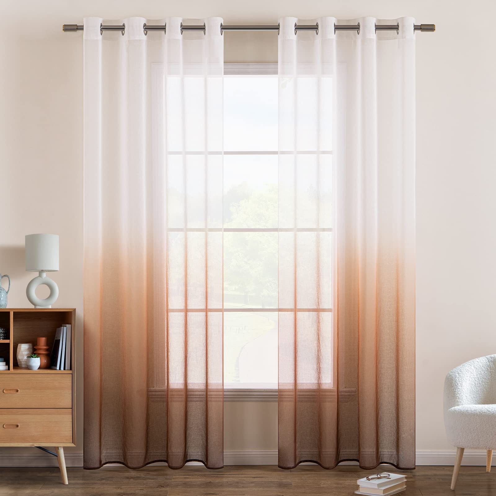 Õhuline tüllkardin, värviüleminekuga, valge ja pruun (145x140cm)