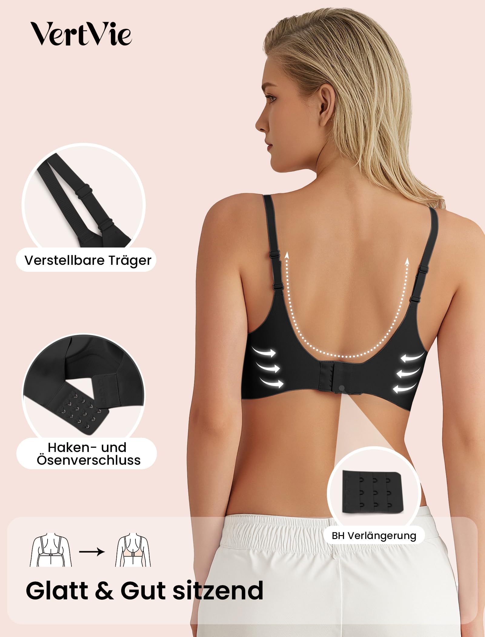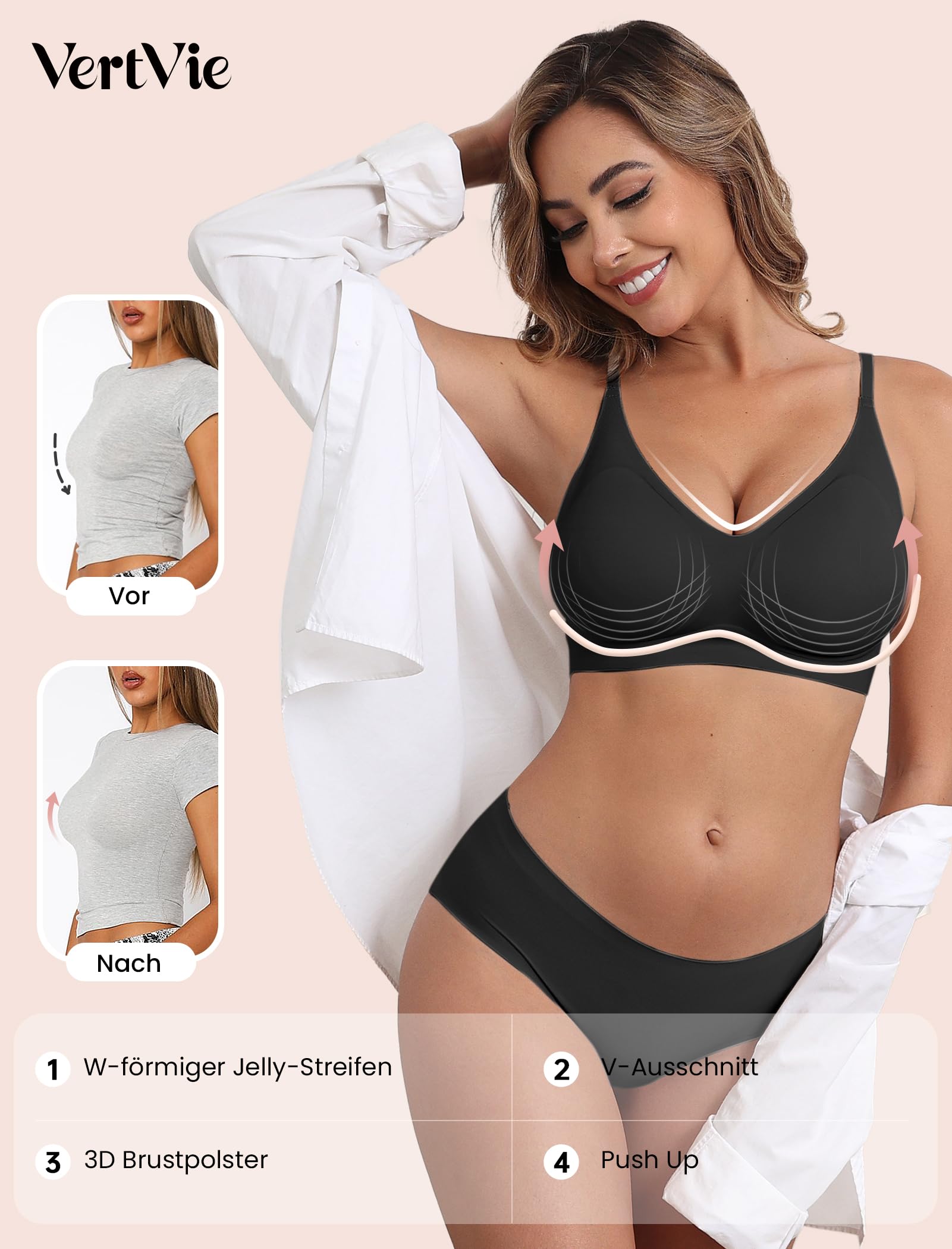 Õmblusteta traadita push-up rinnahoidja, pehme, must (s. S)