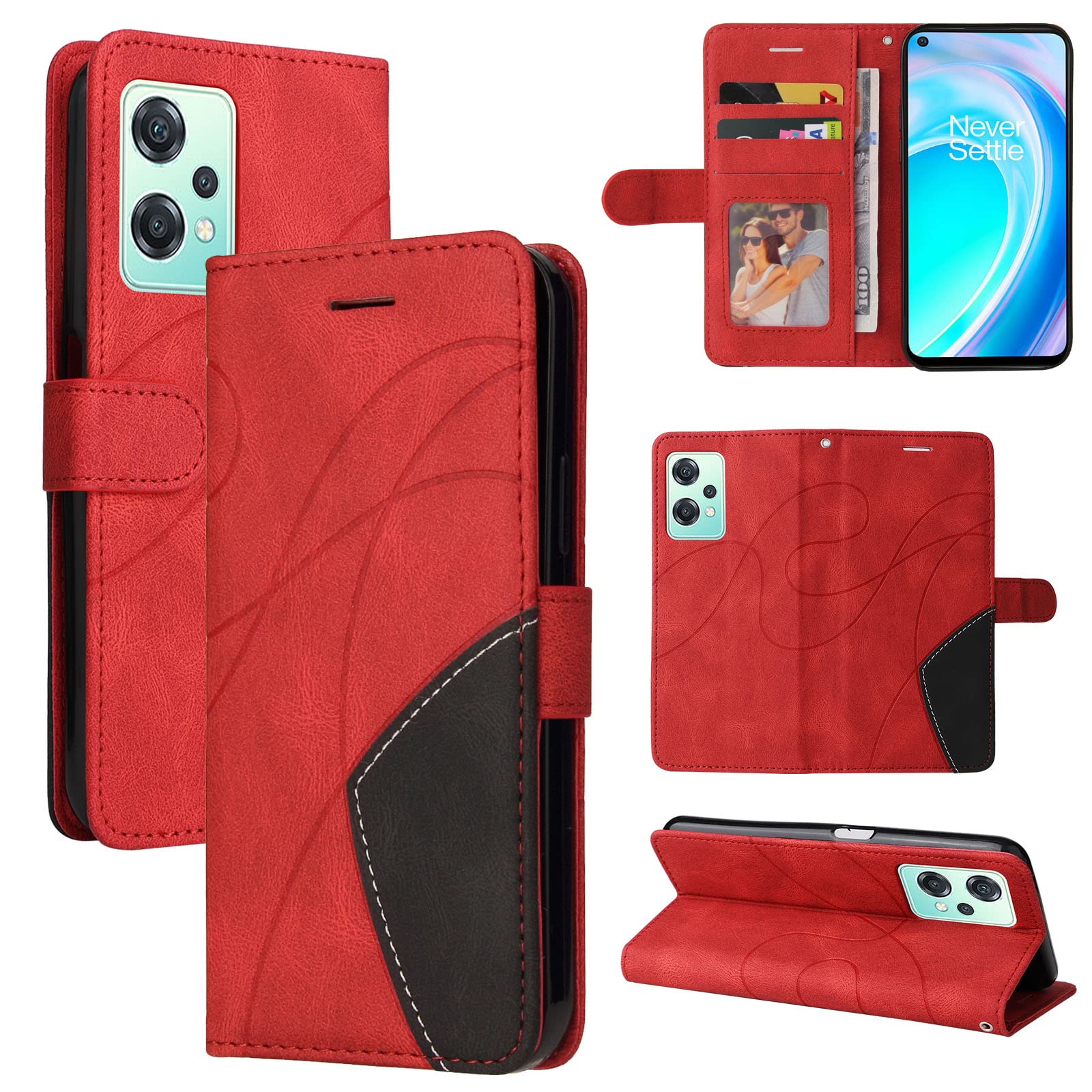 OnePlus Nord CE 2 Lite 5G rahakott-telefonikaaned, kunstnahast, punane
