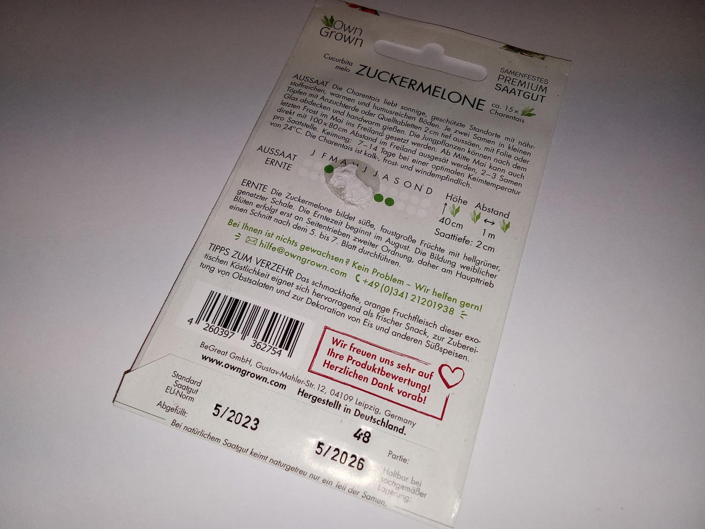 Seemned oranz suhkrumelon (tekst pakendil on saksakeelne)