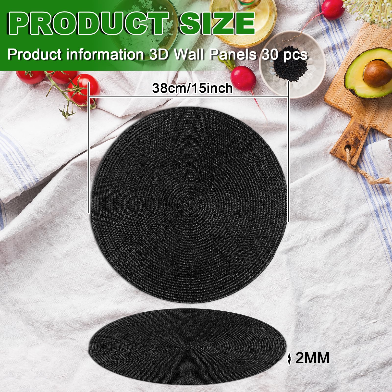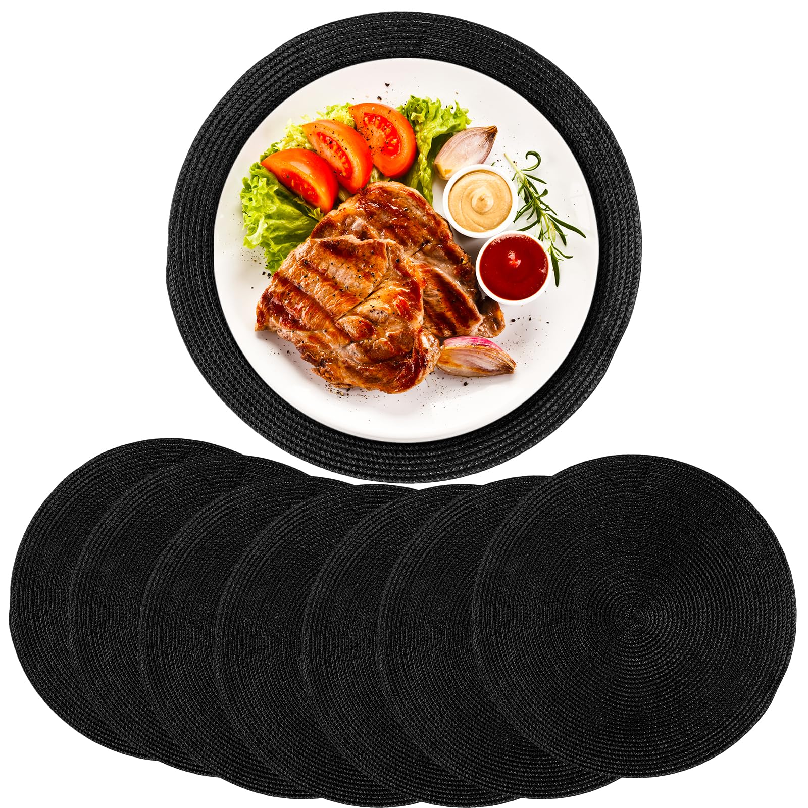 Pestavad ümmargused taldrikualused-lauamatid, must (8tk) kogus