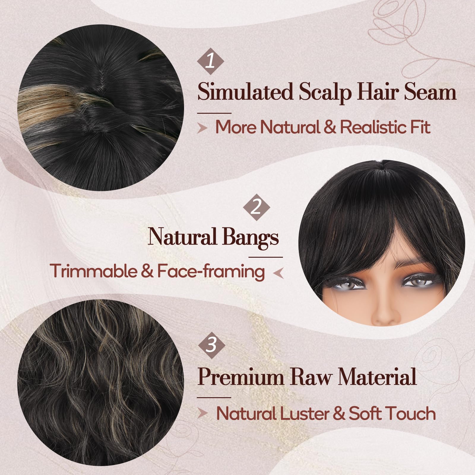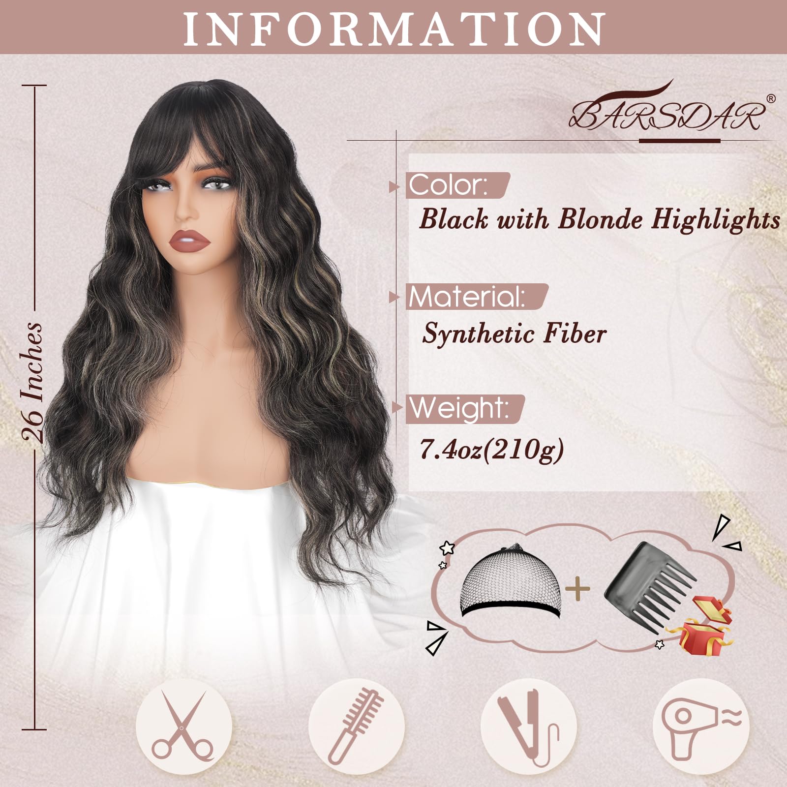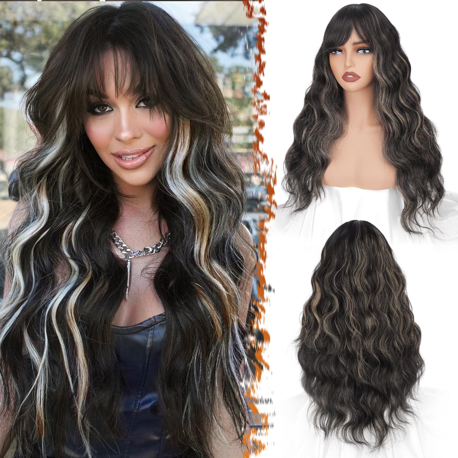 Pikk laineline parukas, tukaga, must-blond (66cm)
