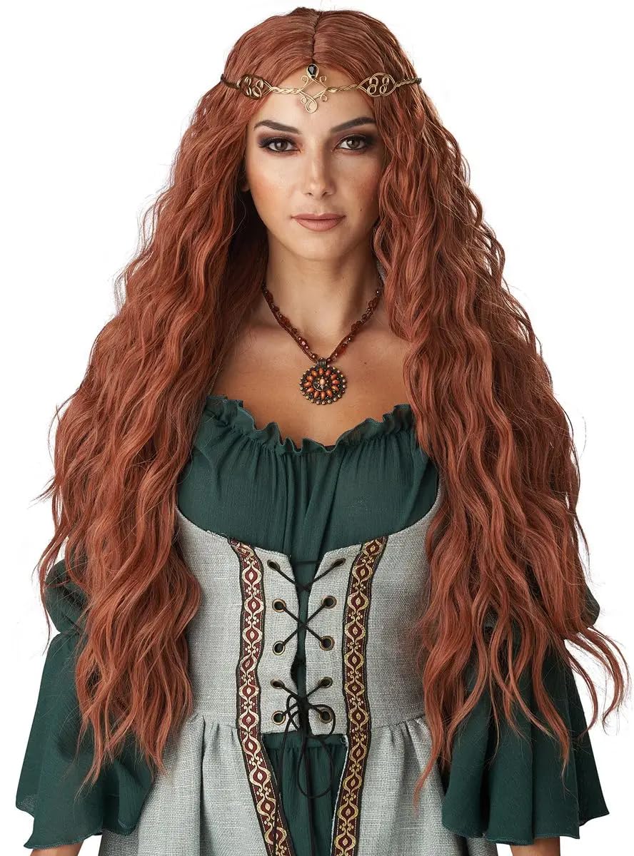 Pikk lokkis parukas naistele, punakaspruun (71cm)