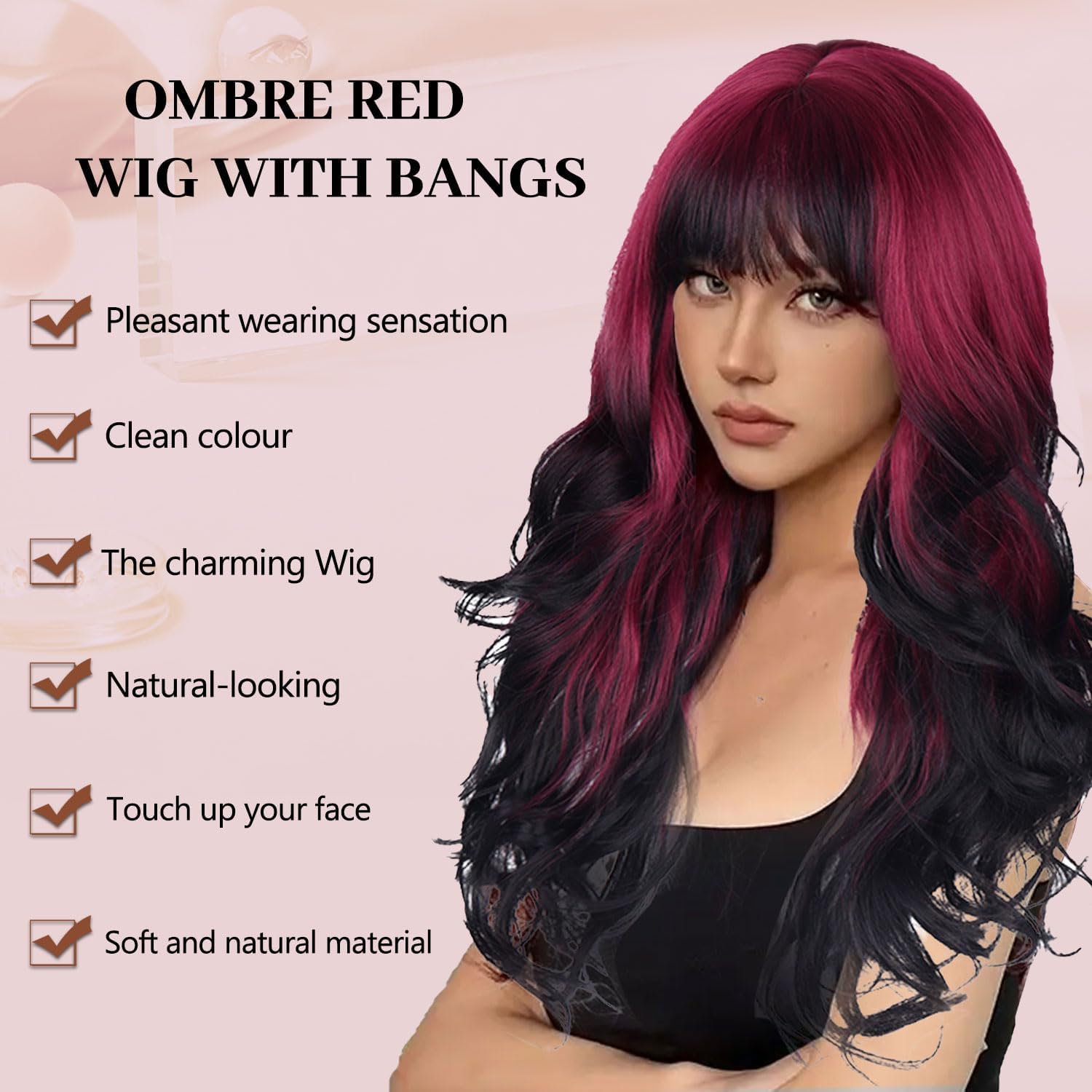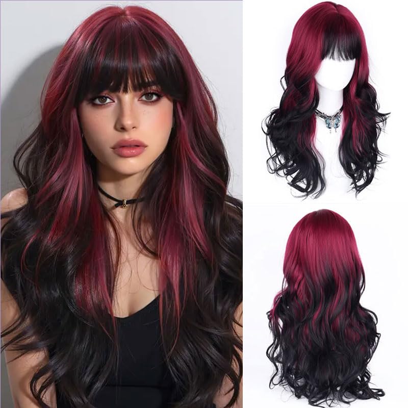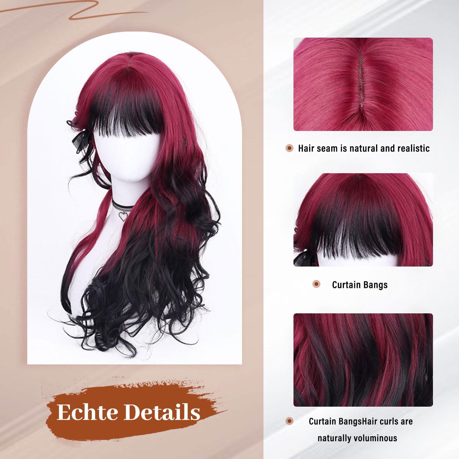 Pikk lokkis parukas, punane ombre, kuumakindel