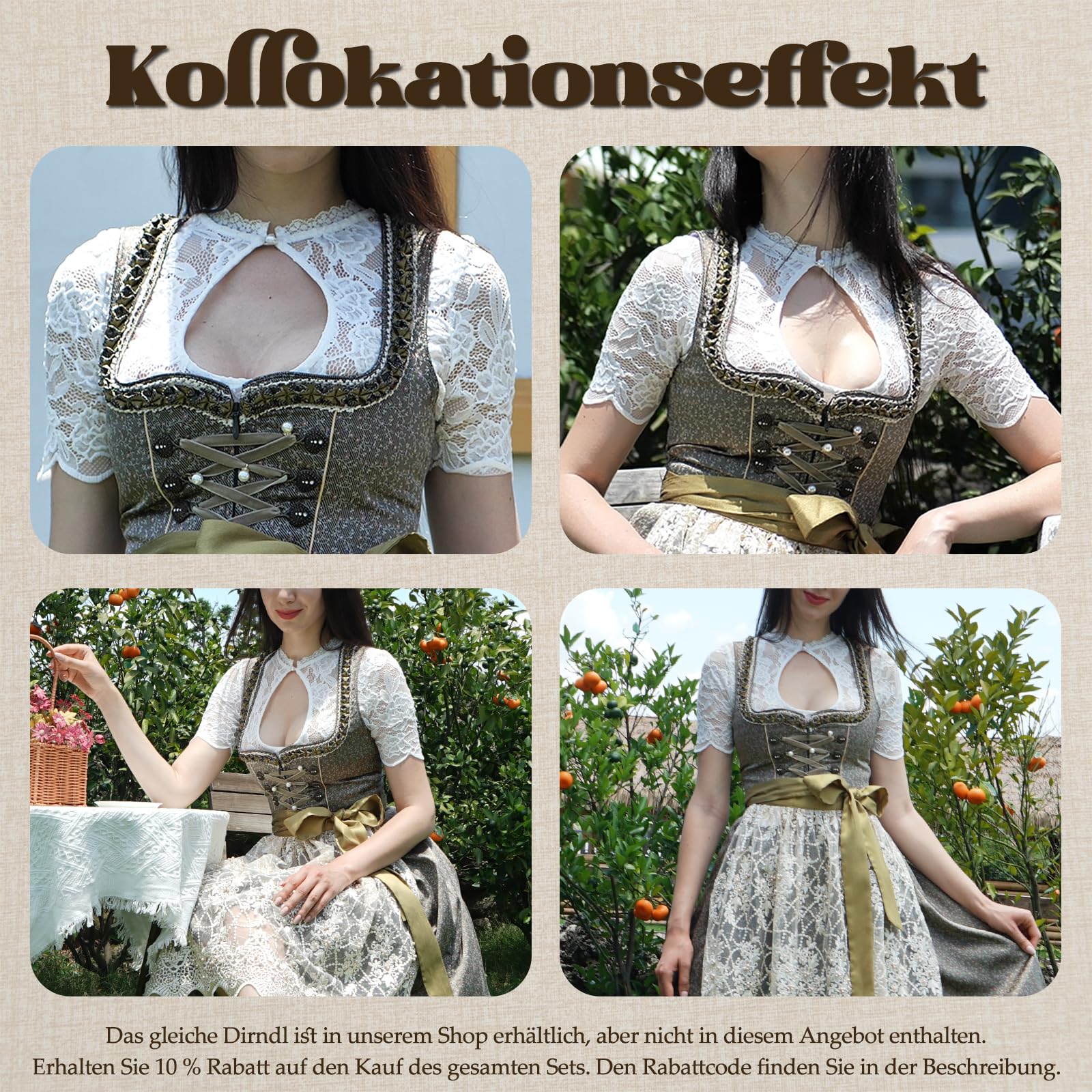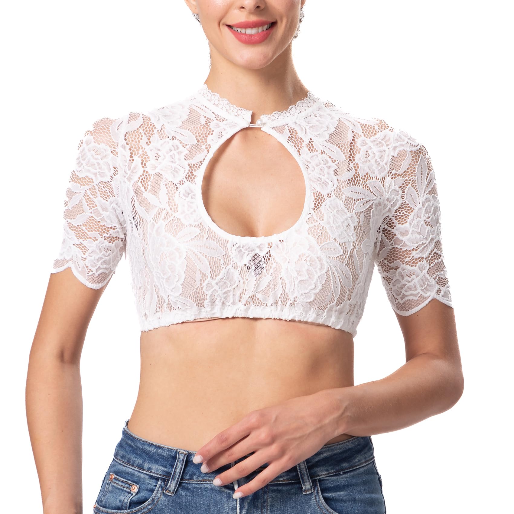 Naiste pitsiline dirndl-pluus, valge (XL)