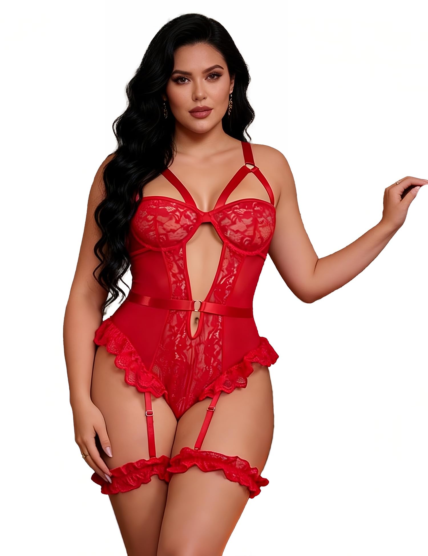 Pitsiline push-up bodi pesukomplekt naistele, punane (s. 3XL-4XL)
