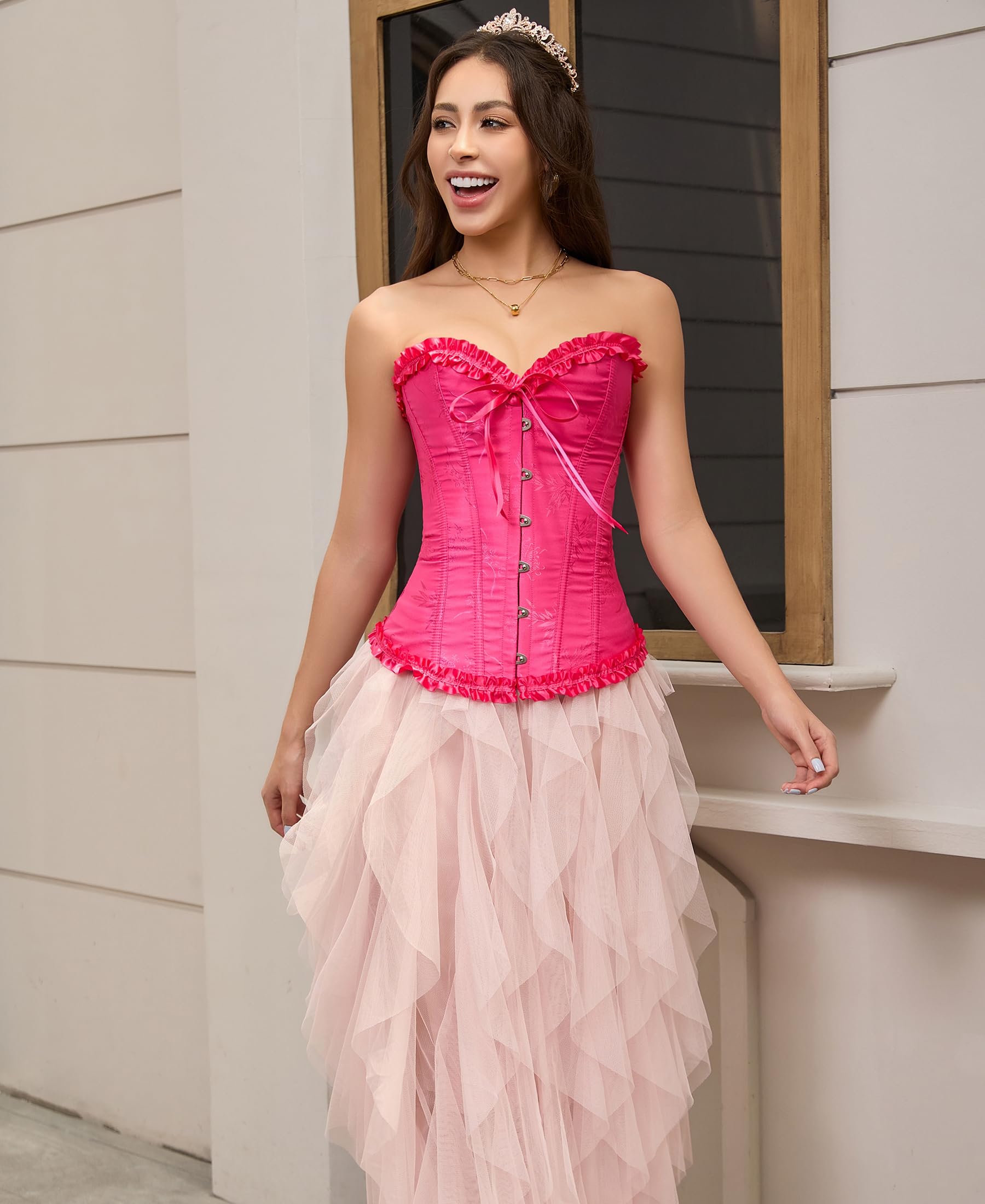 Pitsiline push-up korsett-topp, roosakaspunane (XS)