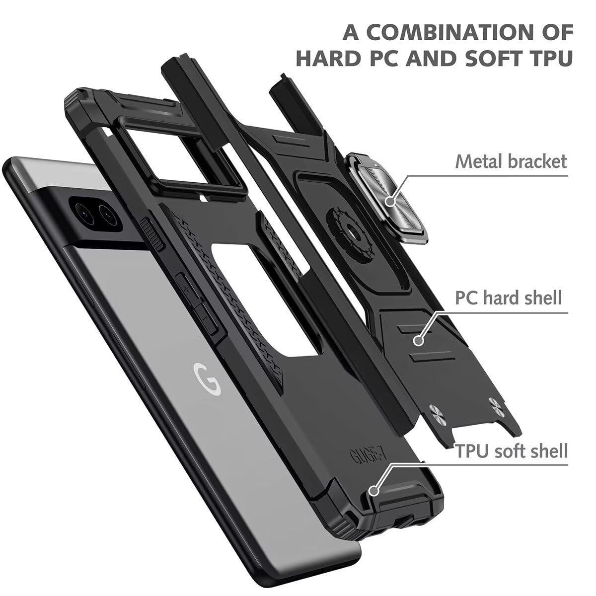 Pixel 7 telefonikaaned koos ekraanikaitsega, must