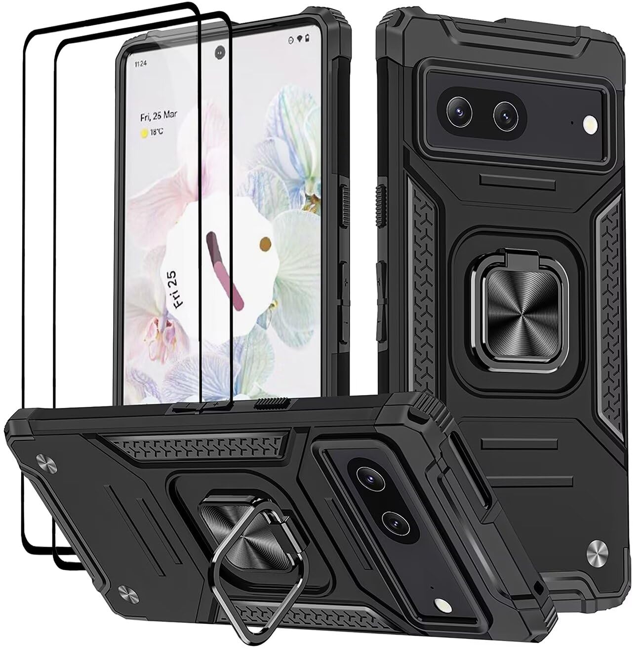Pixel 7 telefonikaaned koos ekraanikaitsega, must kogus