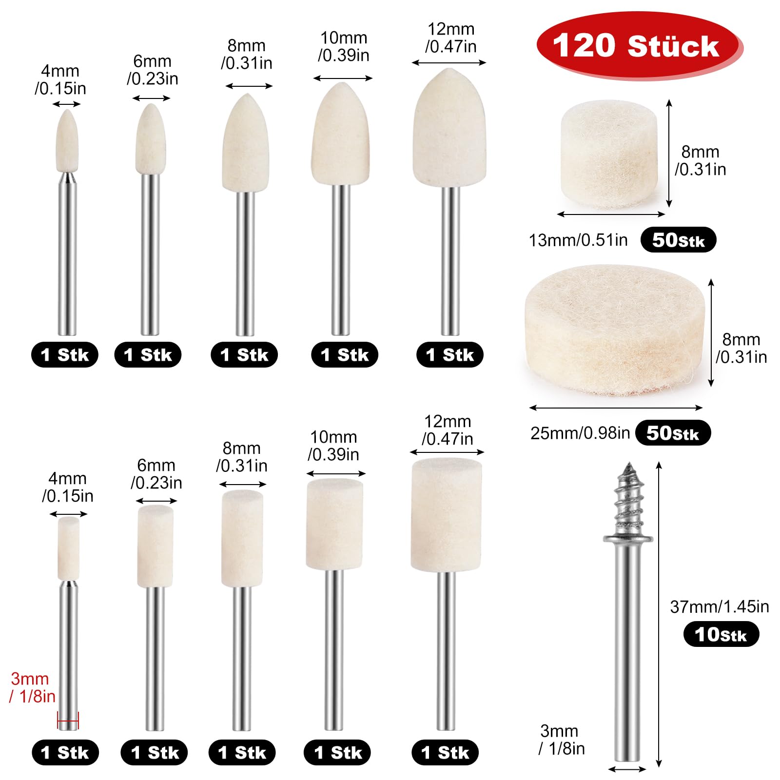Poleerimisketaste ja otsikute komplekt (120tk, 3mm)