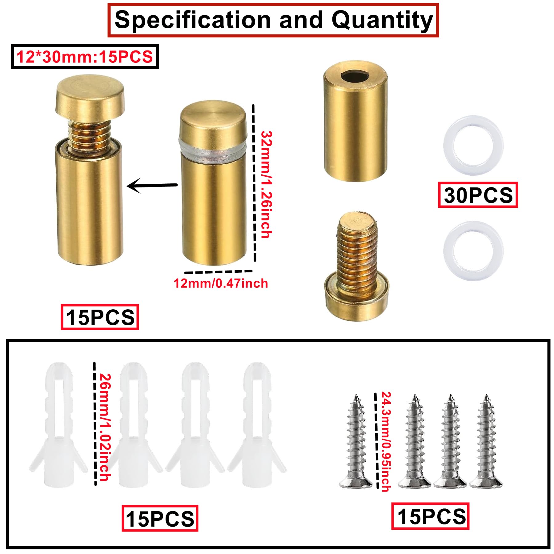 Poltide komplekt, kuldne (15tk, 12x30mm)