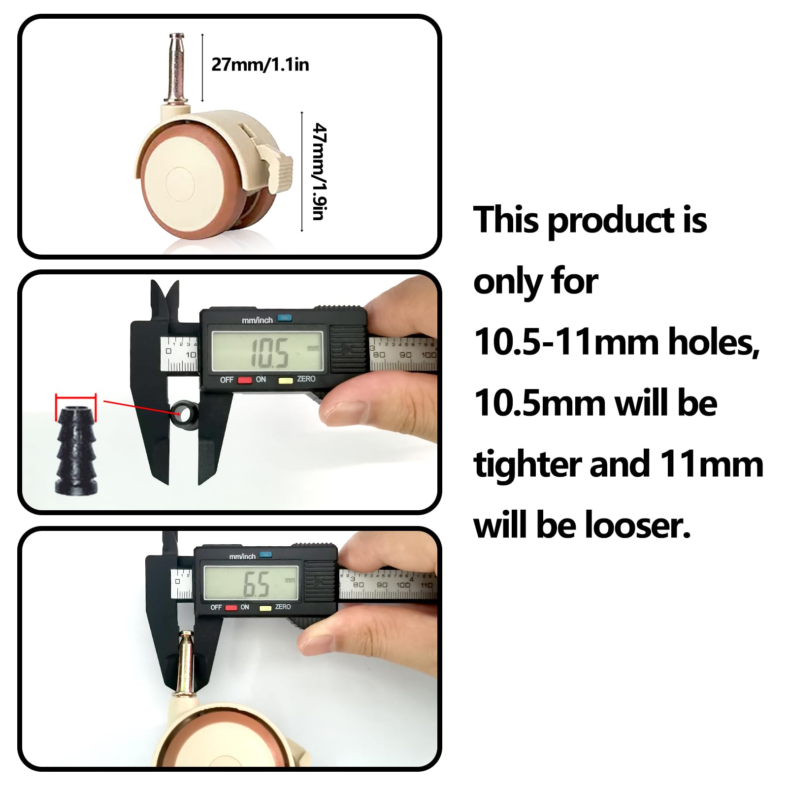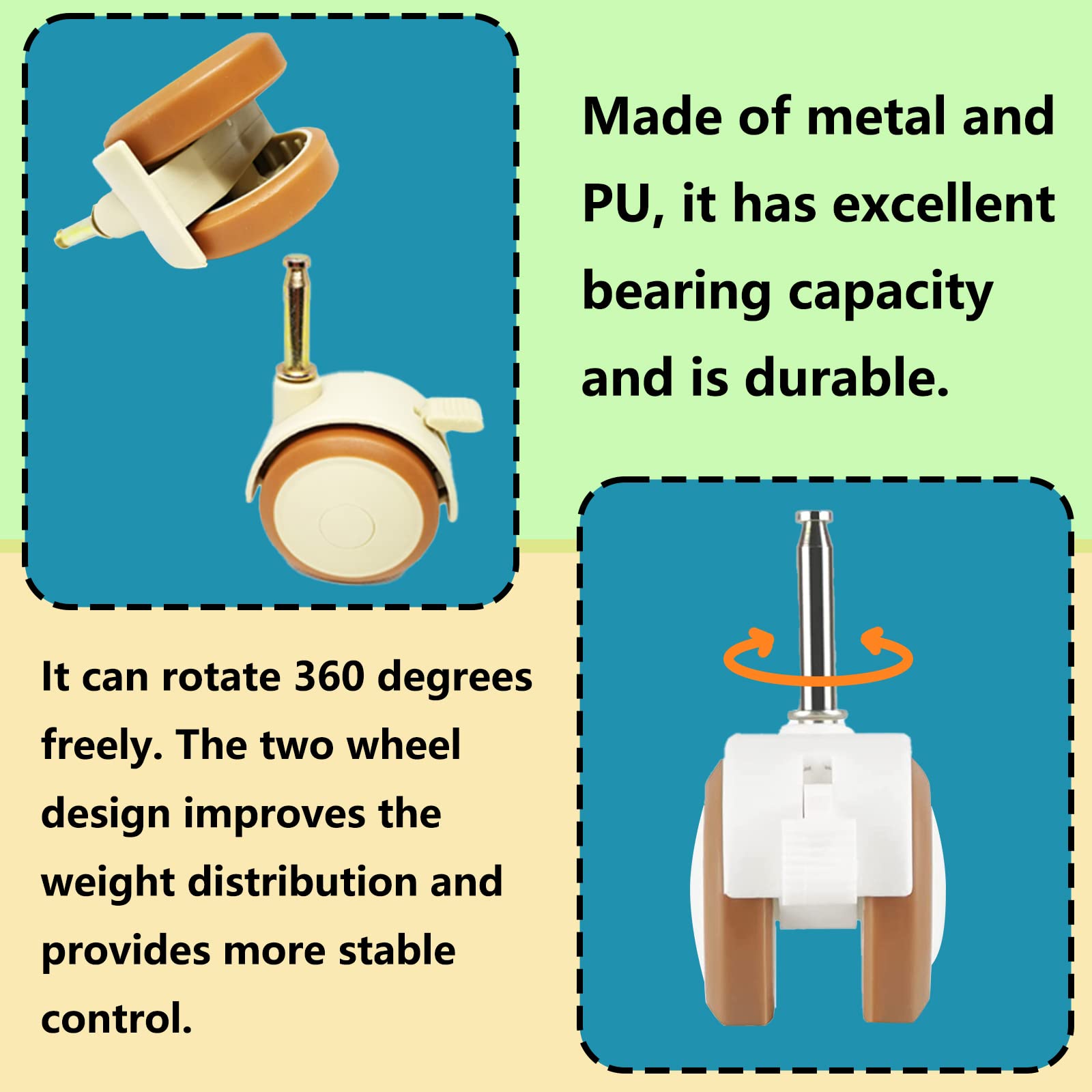 Pööratavad kummirattad, vaiksed, piduriga (4tk, 10.5mm)