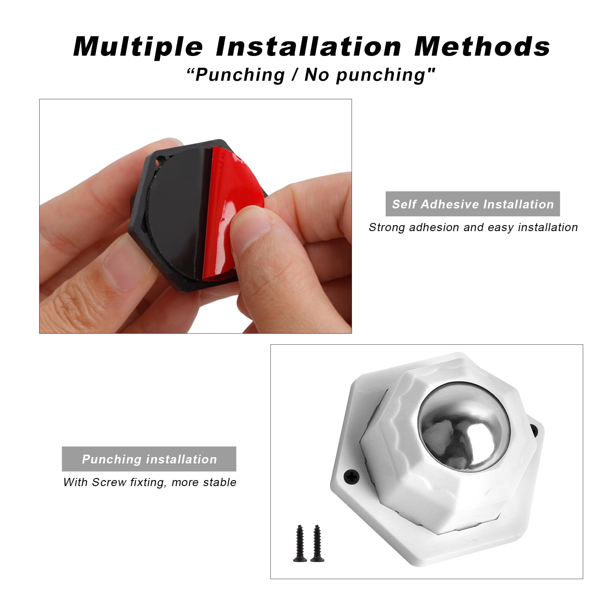 Pööratavad mööbli või kastide rattad, must ja valge (8tk, 20mm)
