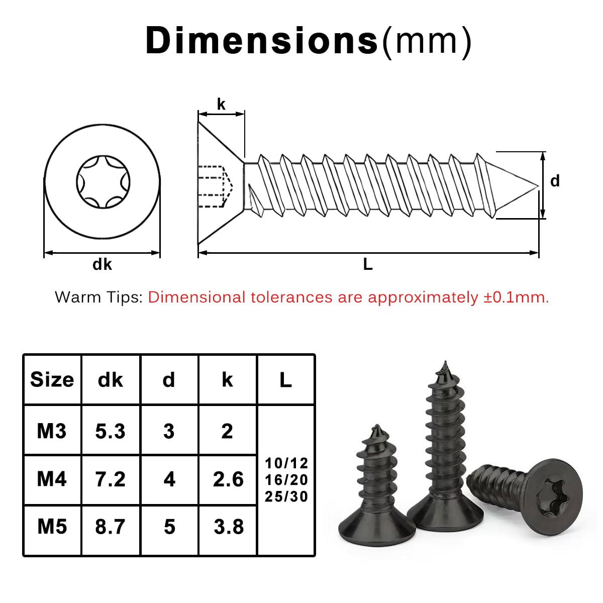Puidukruvid Torx, mustad (50tk, M3x16mm)