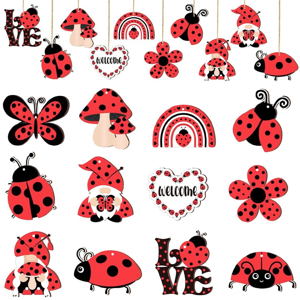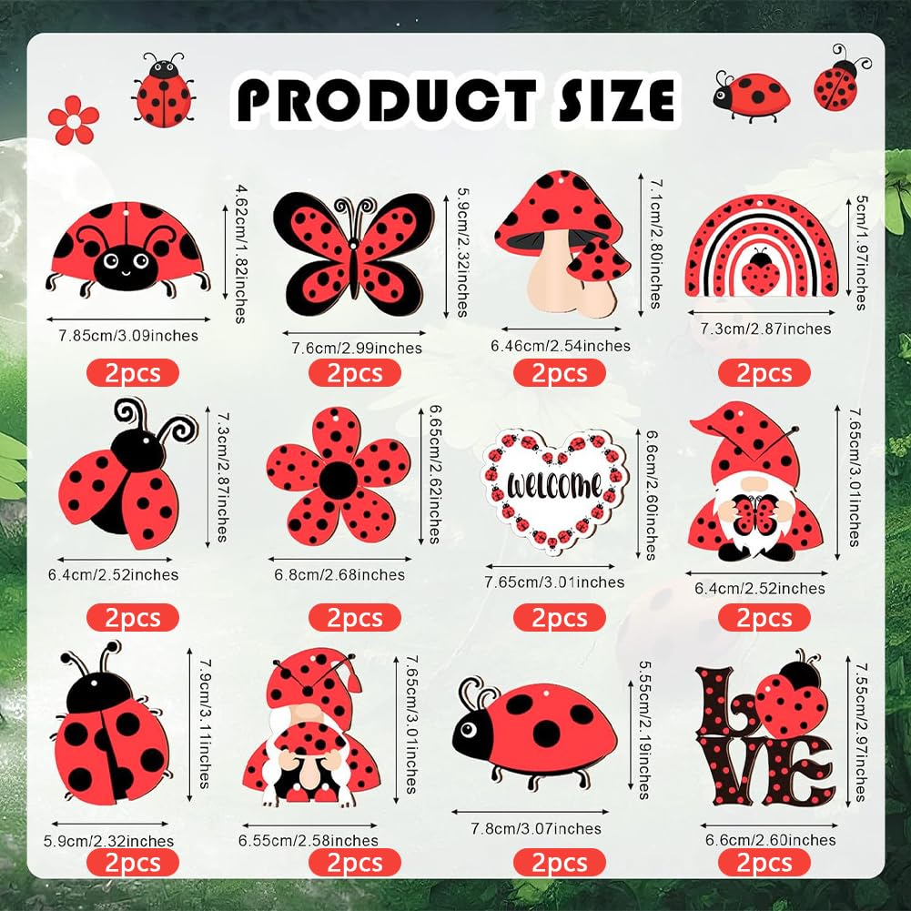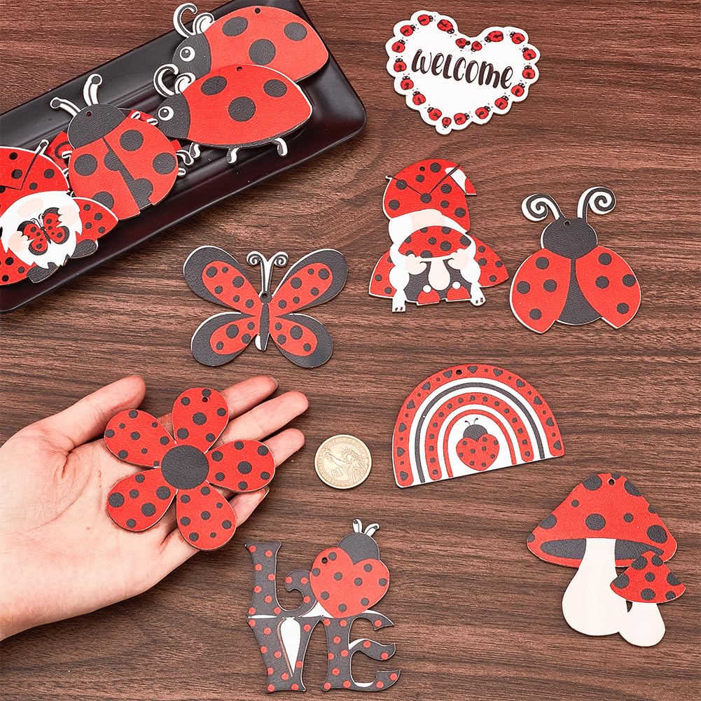 Puidust lepatriinu ripatsid, punane (24tk) kogus