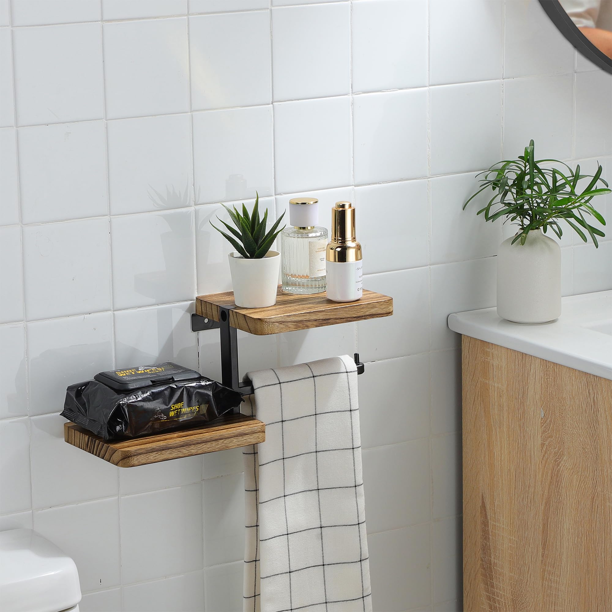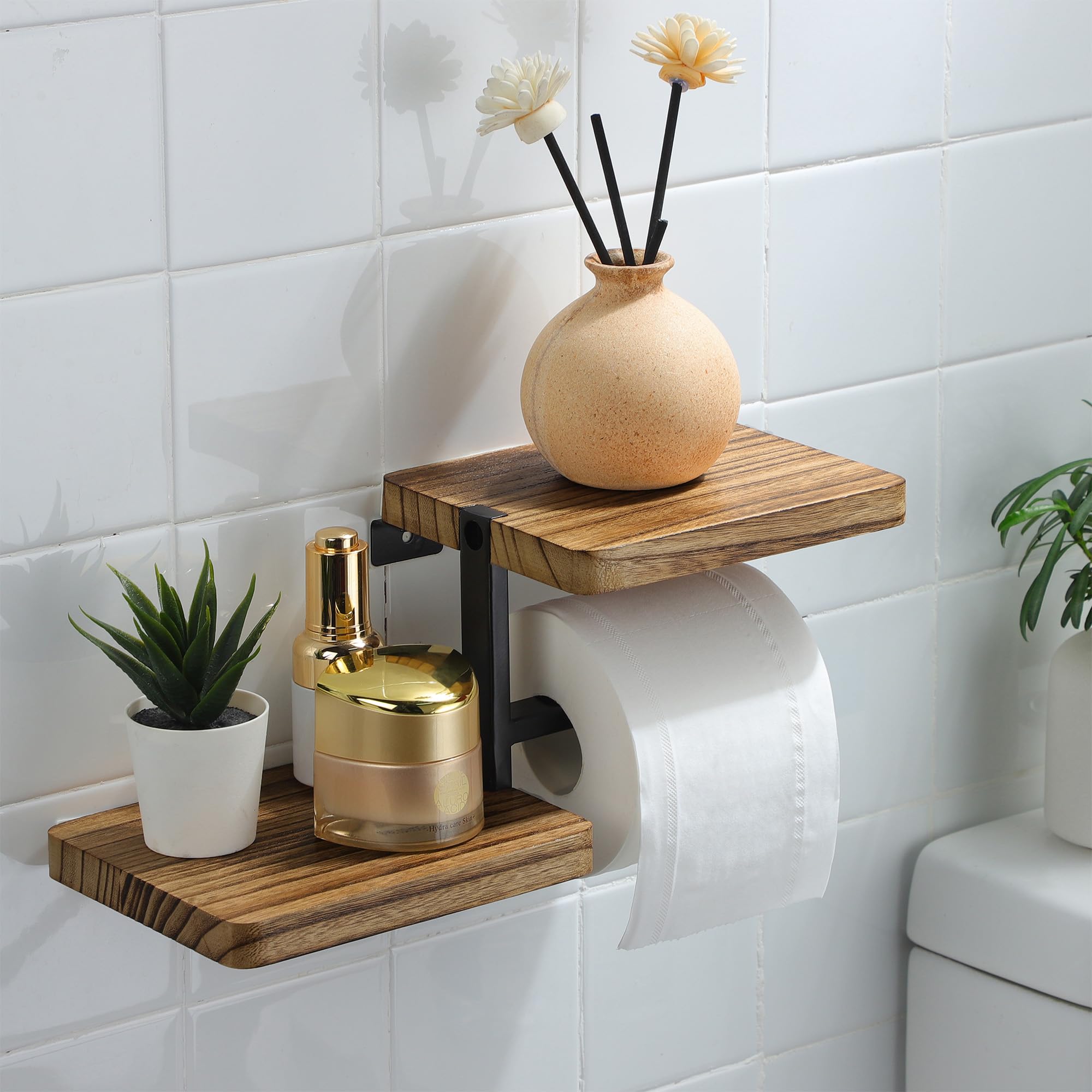 Puidust tualettpaberi hoidik riiuliga kogus
