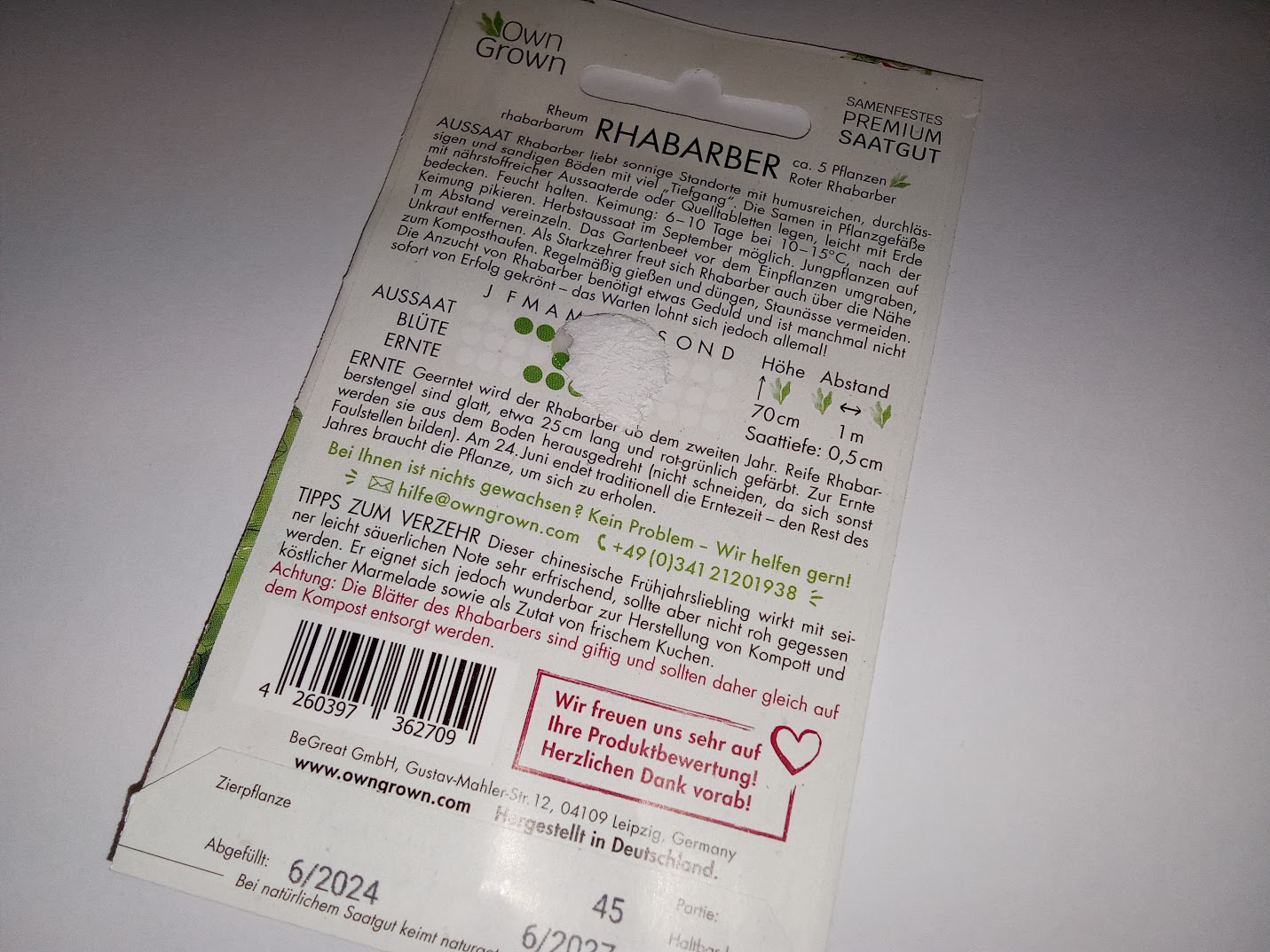 Seemned punane rabarber (tekst pakendil on saksakeelne)