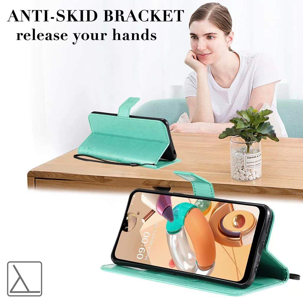 Realme C21 rahakotiga telefonikaaned, nahast, roheline, reljeefse mustriga kogus