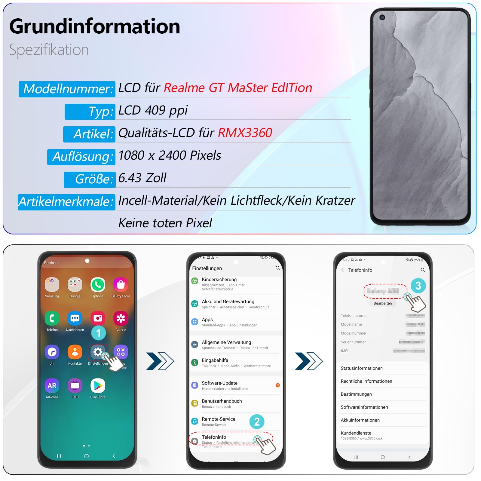 Realme GT Master telefoni LCD asendusekraan, must, raamiga (koos tööriistadega) kogus