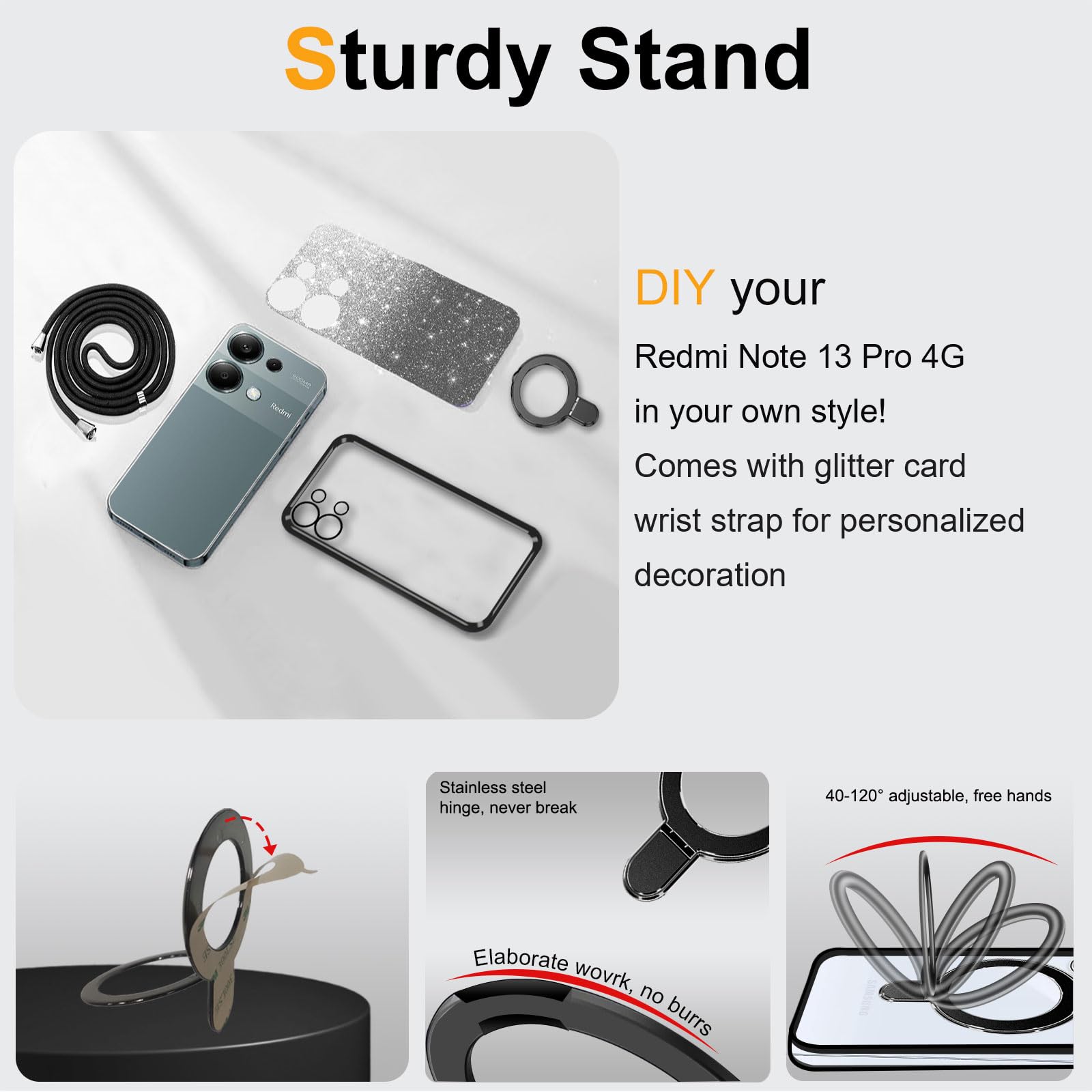 Redmi Note 13 Pro 4G telefonikaaned, rihmaga ja eemaldatava jalaga, läbipaistev