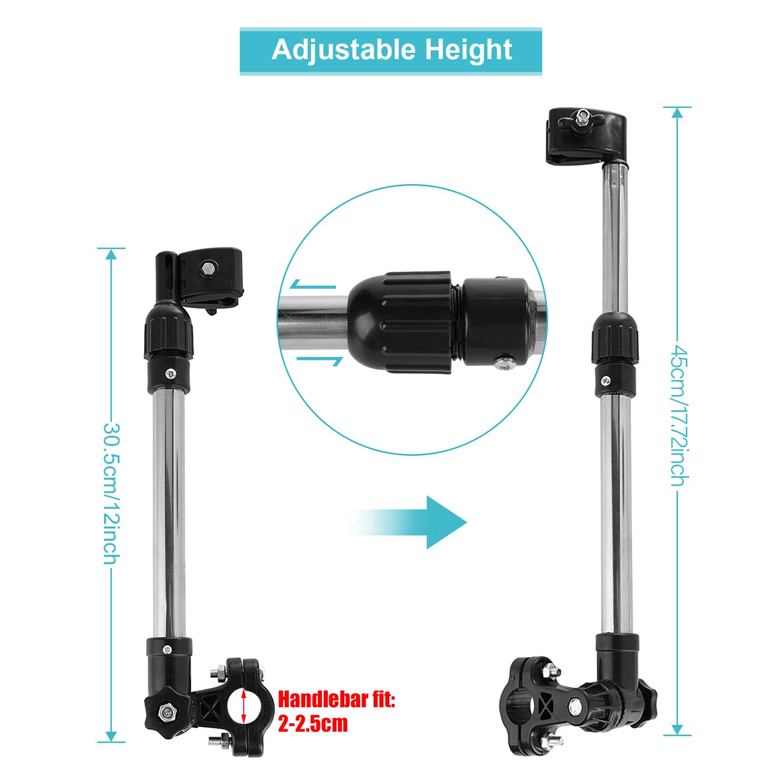 Reguleeritav vihmavarju hoidik jalgrattale või vankrile, hõbedane