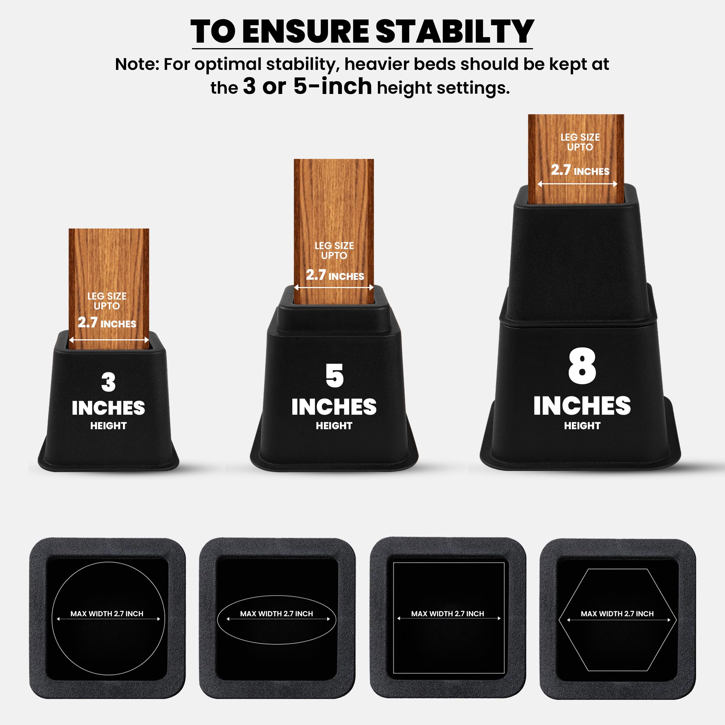 Reguleeritavad mööbli kõrgendused, must (8tk, 7-20cm)