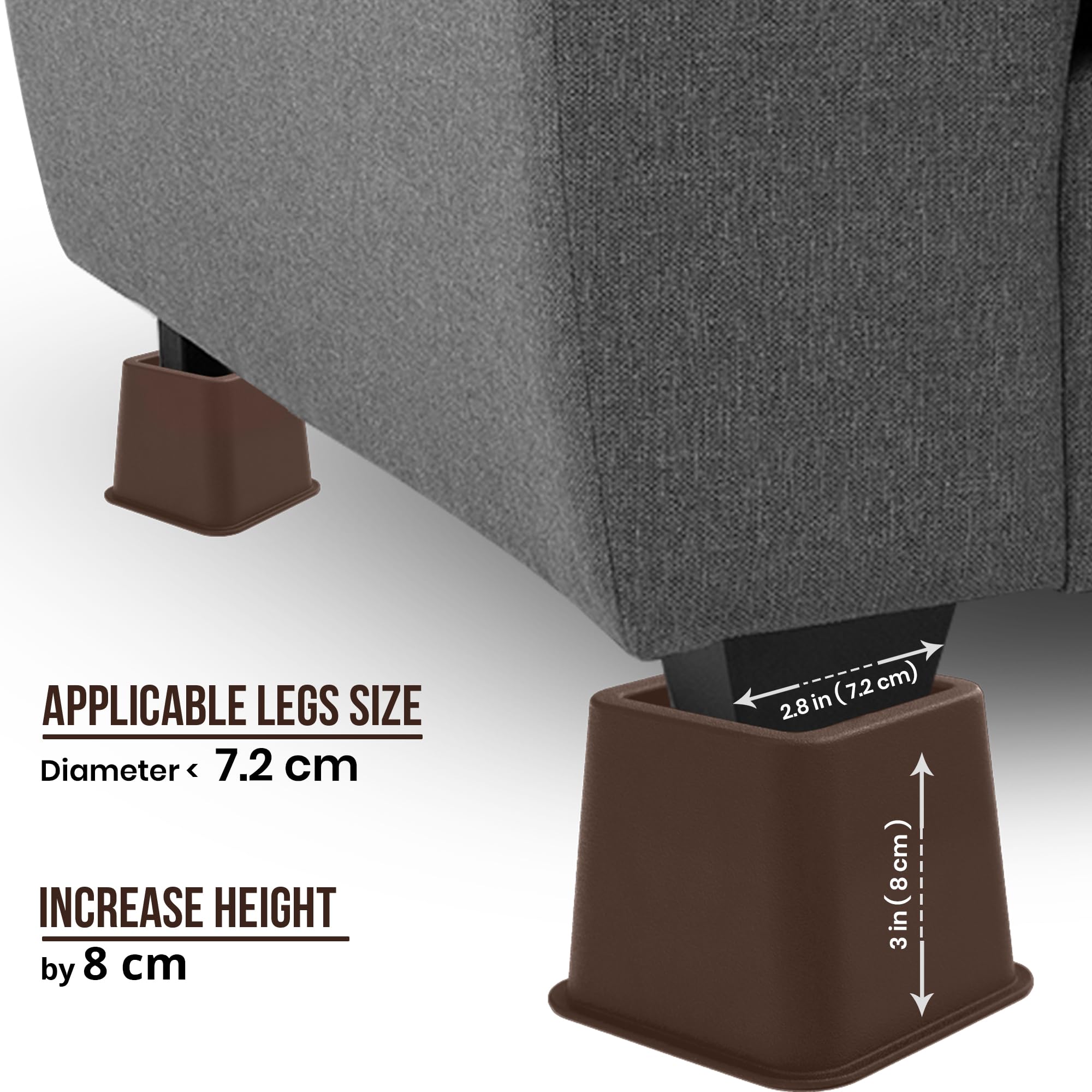 Reguleeritavad mööbli kõrgendused, pruun (8tk, 8-20cm)