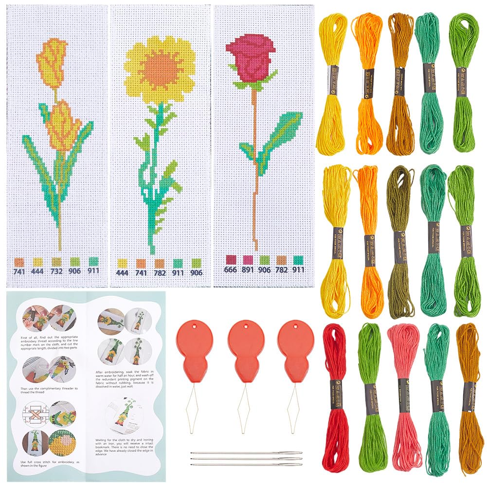 Ristpistes järjehoidjate tegemise komplektid, lille- ja taimemotiividega (3 järjehoidjat) kogus
