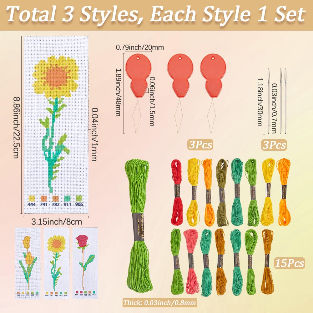 Ristpistes järjehoidjate tegemise komplektid, lille- ja taimemotiividega (3 järjehoidjat)