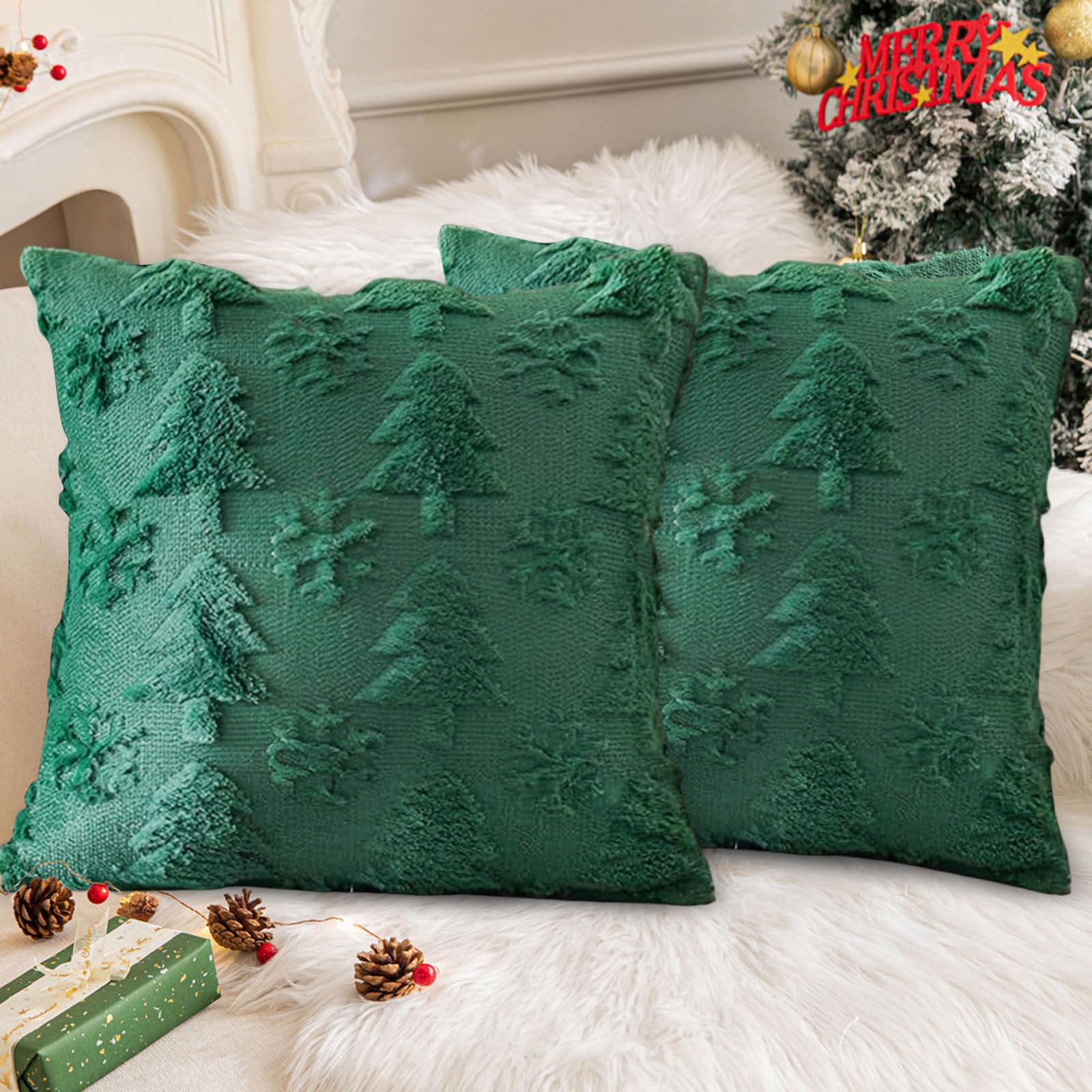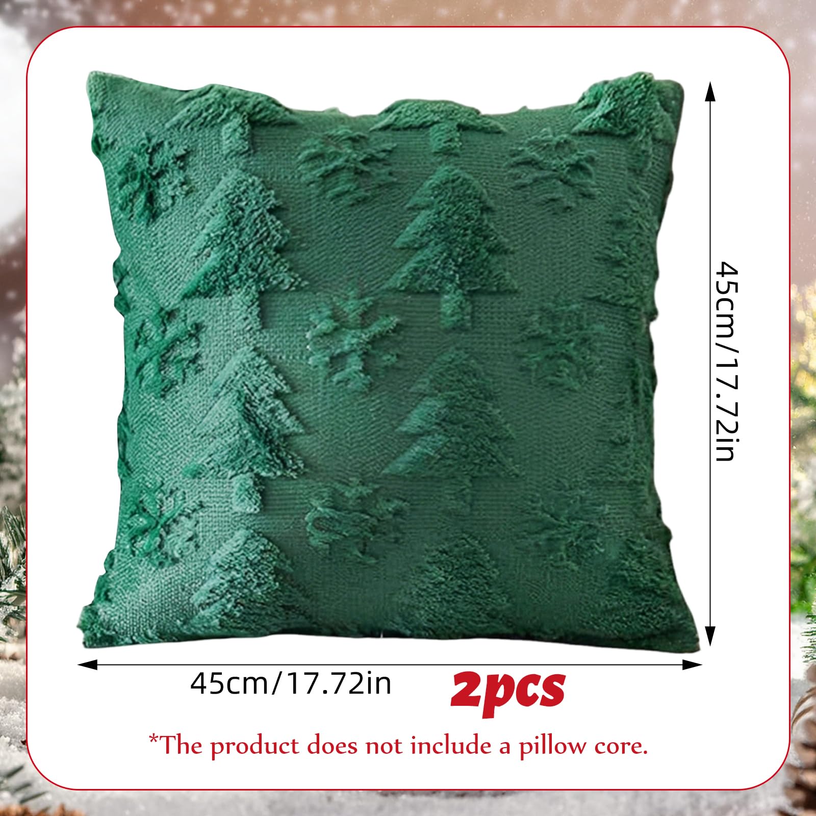 Rohelised pehmed kuusega padjakatted 2 tk (45x45cm)