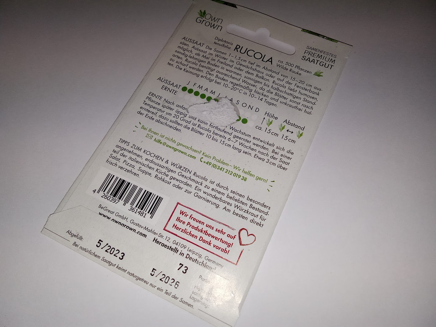 Seemned rukola (tekst pakendil on saksakeelne)