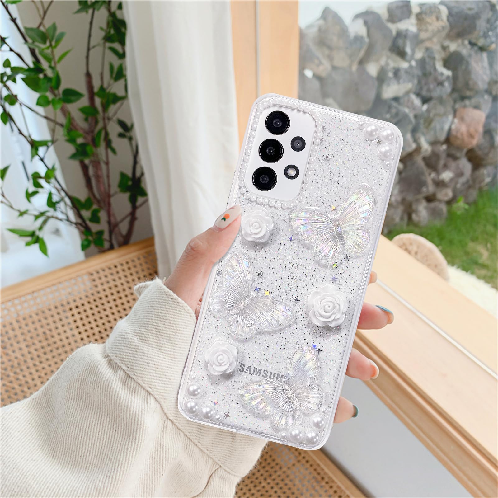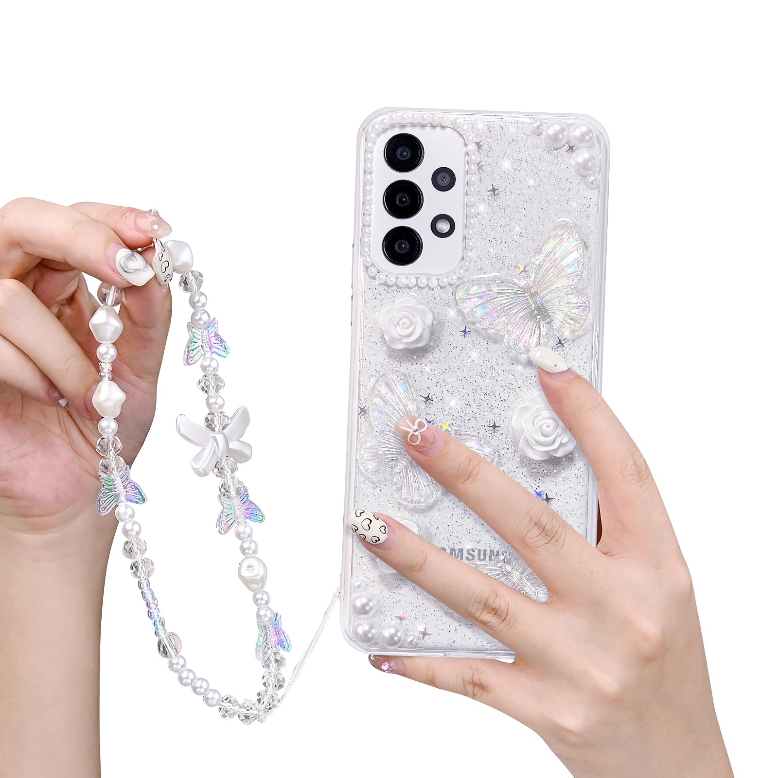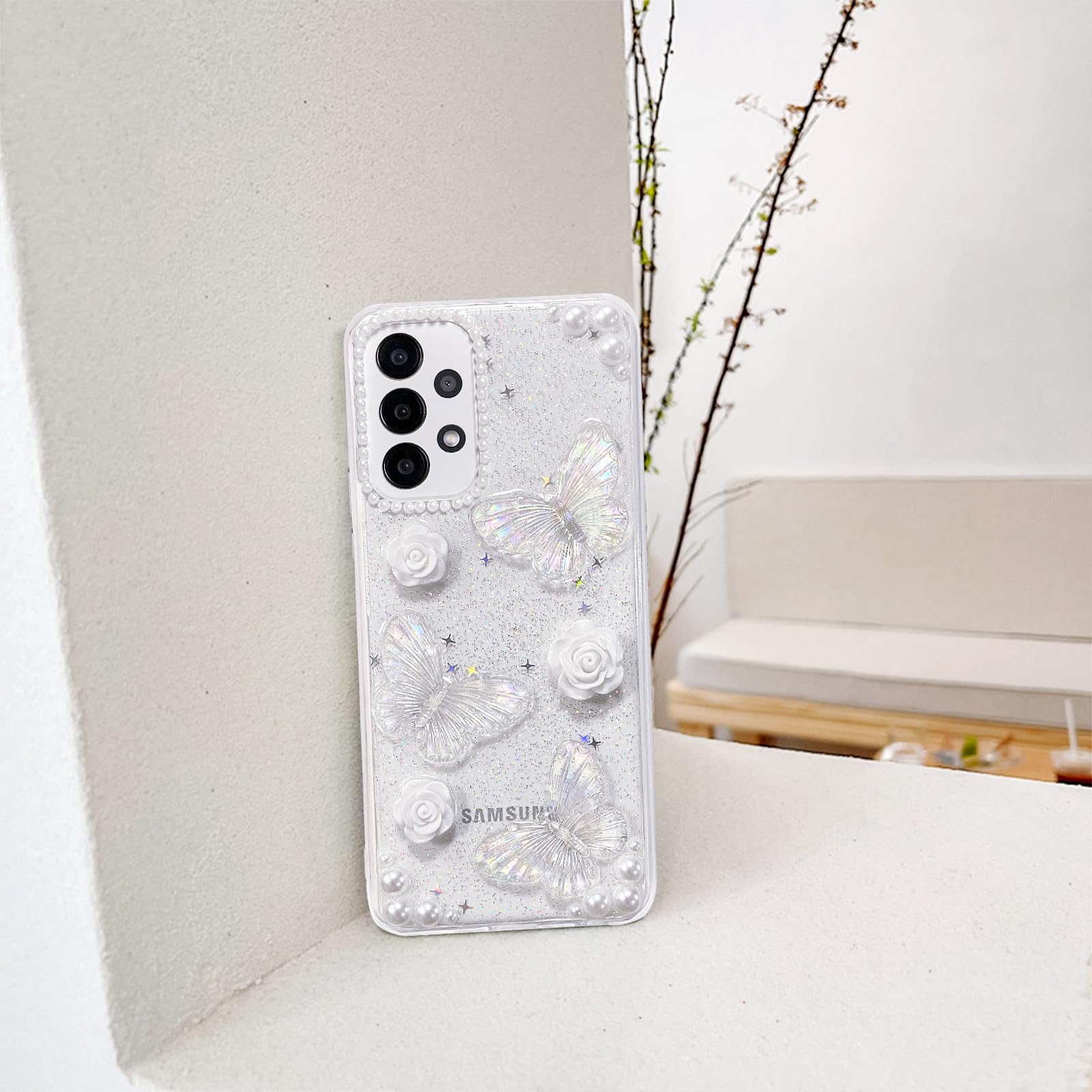 Samsung Galaxy A14 4G/5G telefonikaaned, liblika- ja lillemustriga
