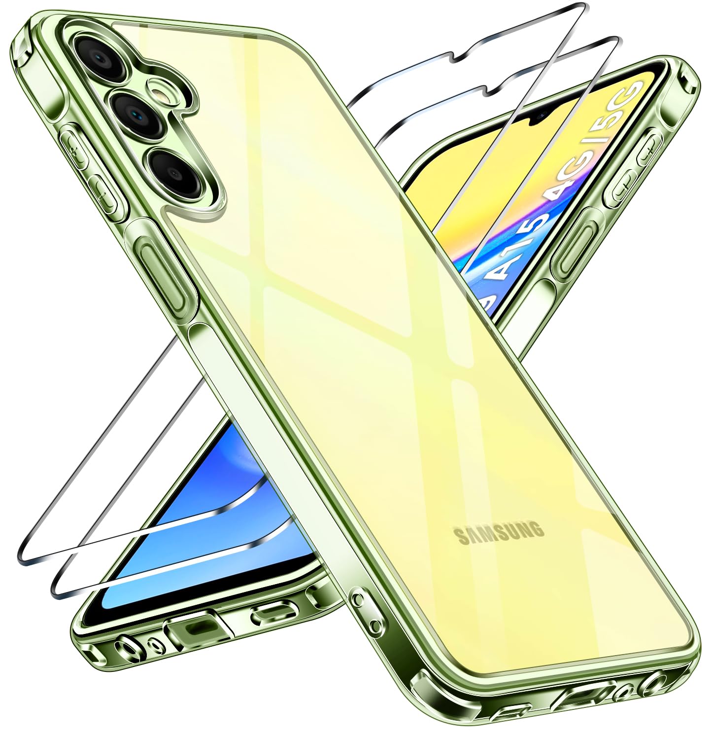 Samsung Galaxy A15 telefonikaaned ja ekraanikaitsed, roheline (2tk)