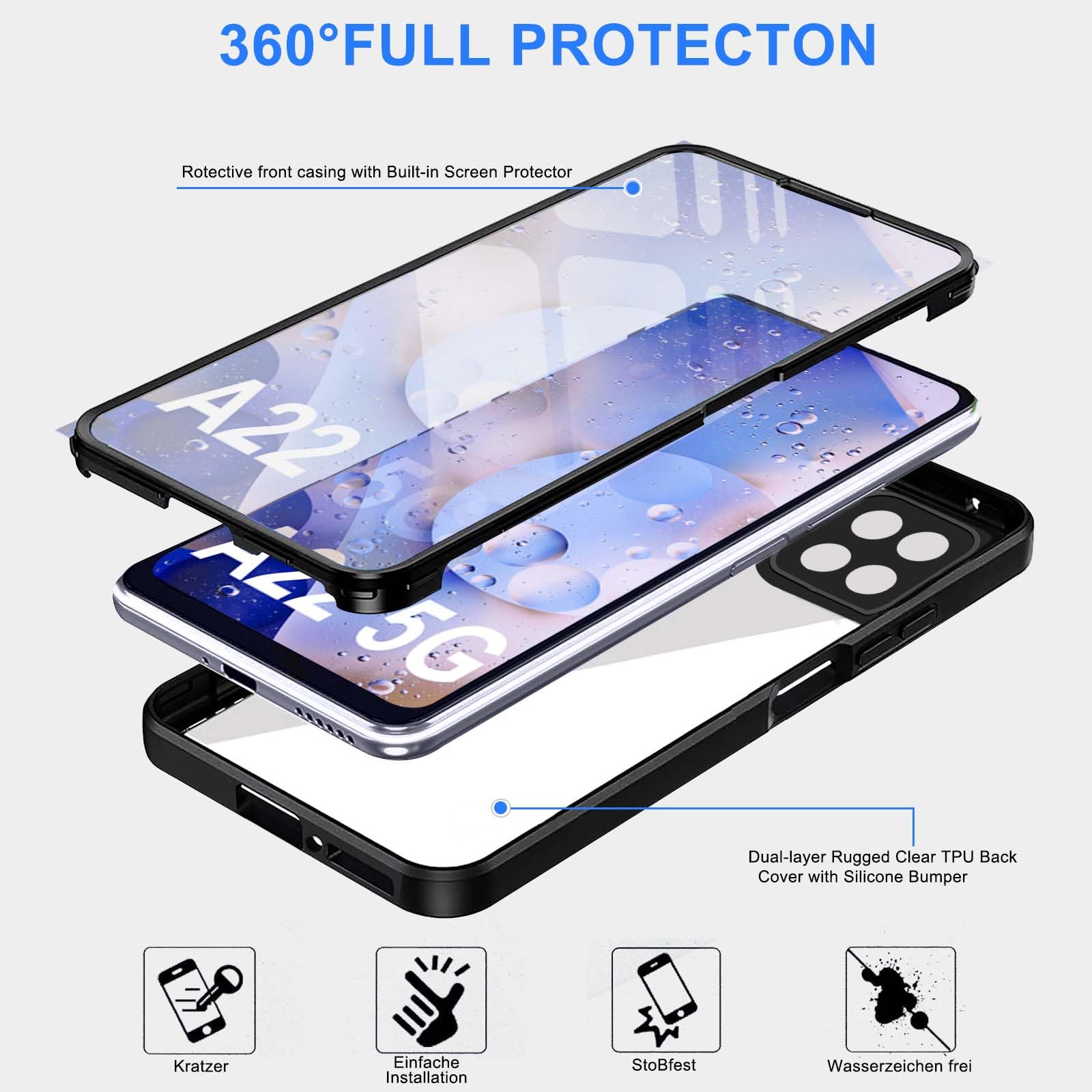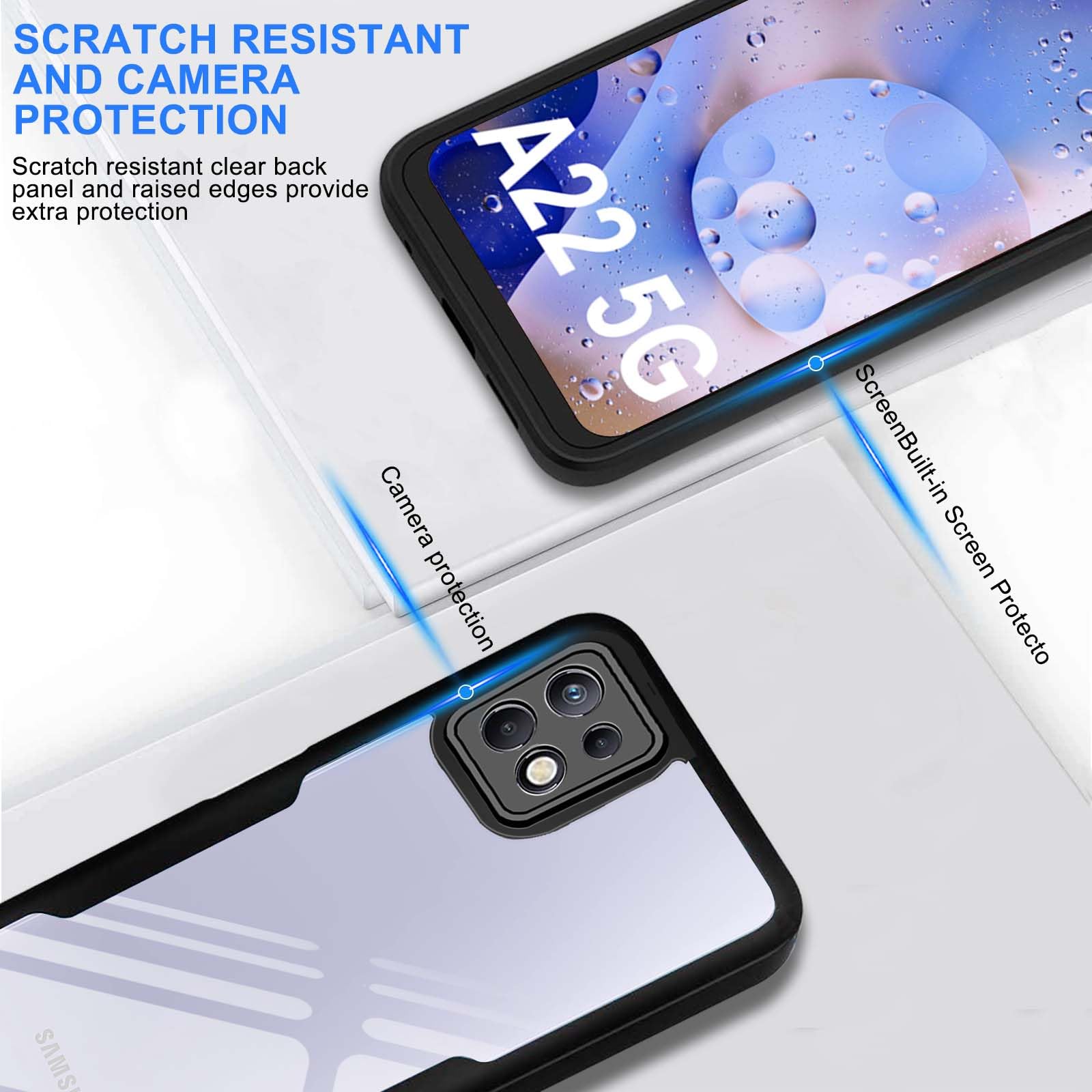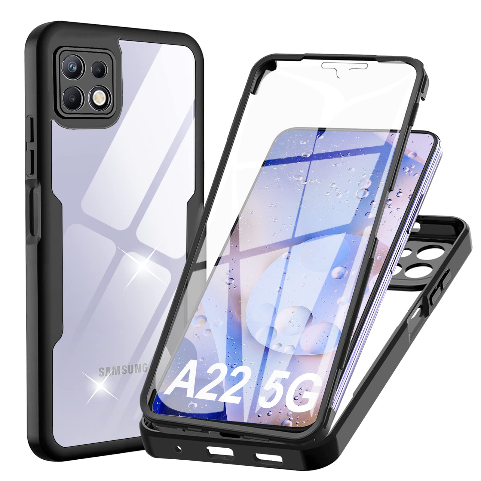 Samsung Galaxy A22 5G telefonikaaned, läbipaistev, ekraanikaitsega, must