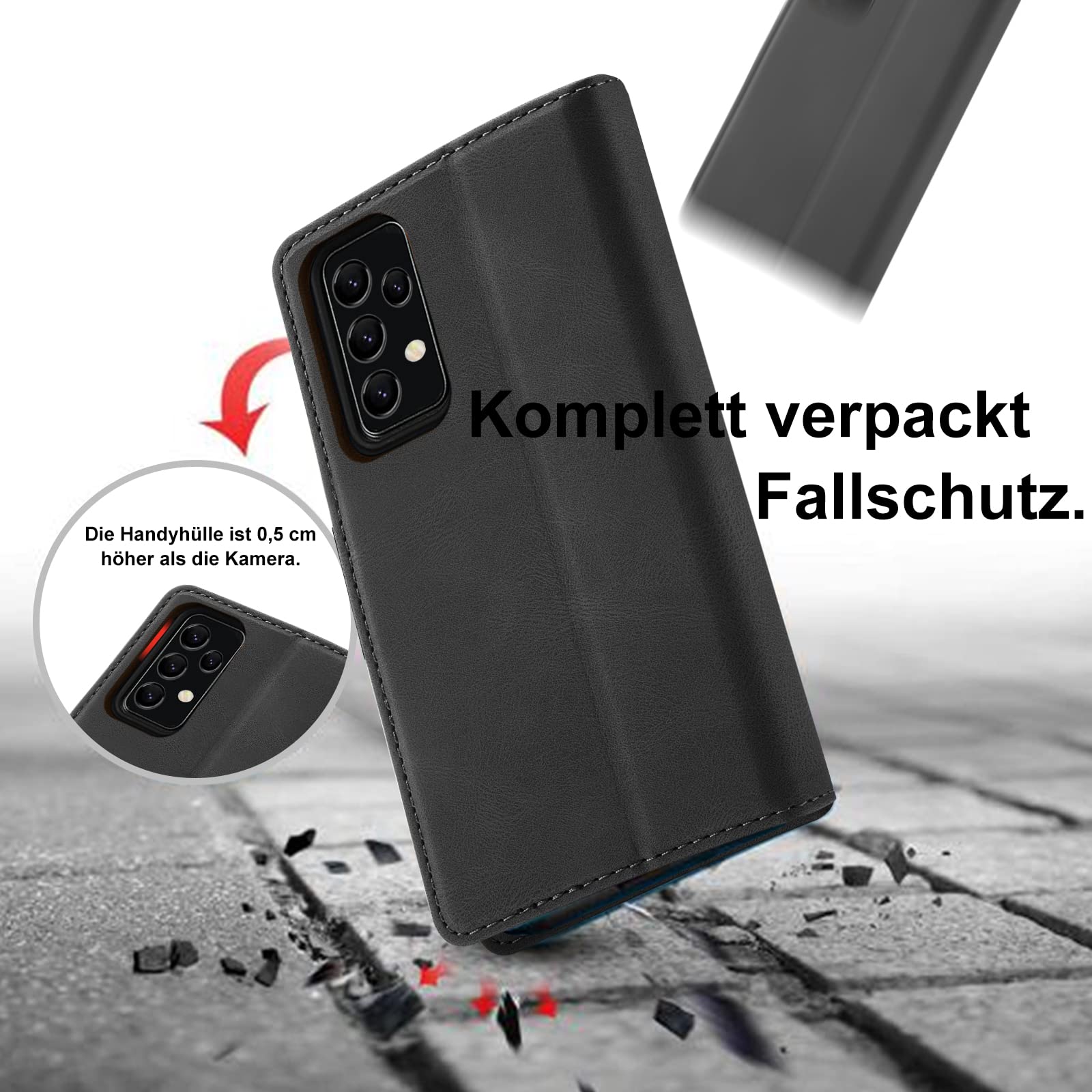 Samsung Galaxy A32 5G telefonikaaned, nahast, põrutuskindel, must