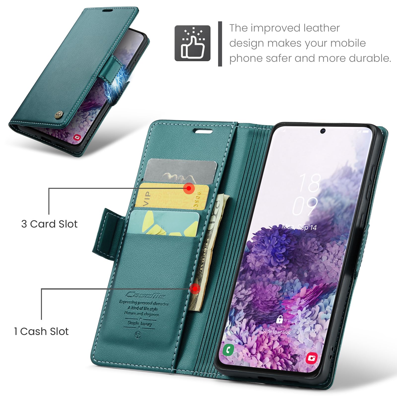 Samsung Galaxy S20 telefonikaaned, rahakotiga, RFID-kaitsega, PU-nahast, sinakasroheline kogus