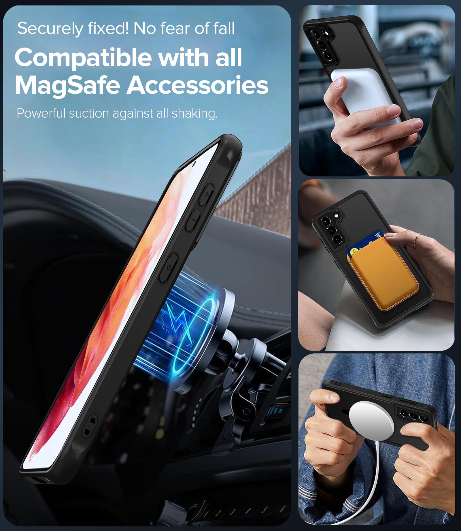Samsung Galaxy S21 5G telefonikaaned, põrutuskindel, magnetiline, mattmust