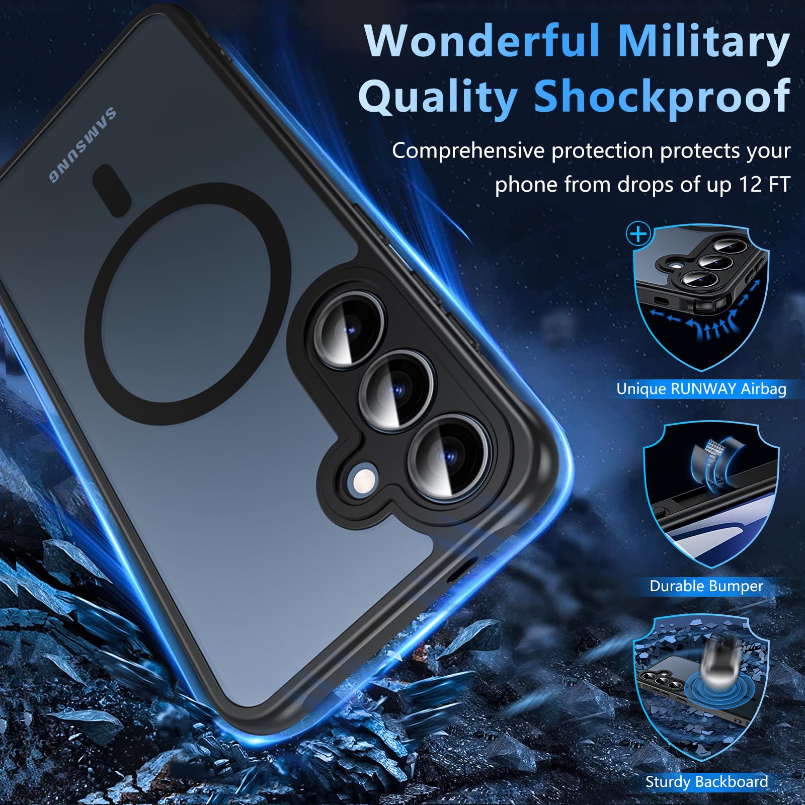 Samsung Galaxy S25 telefonikaaned, magnetiline, kaitseklaasiga, sõjalise kaitsega, must