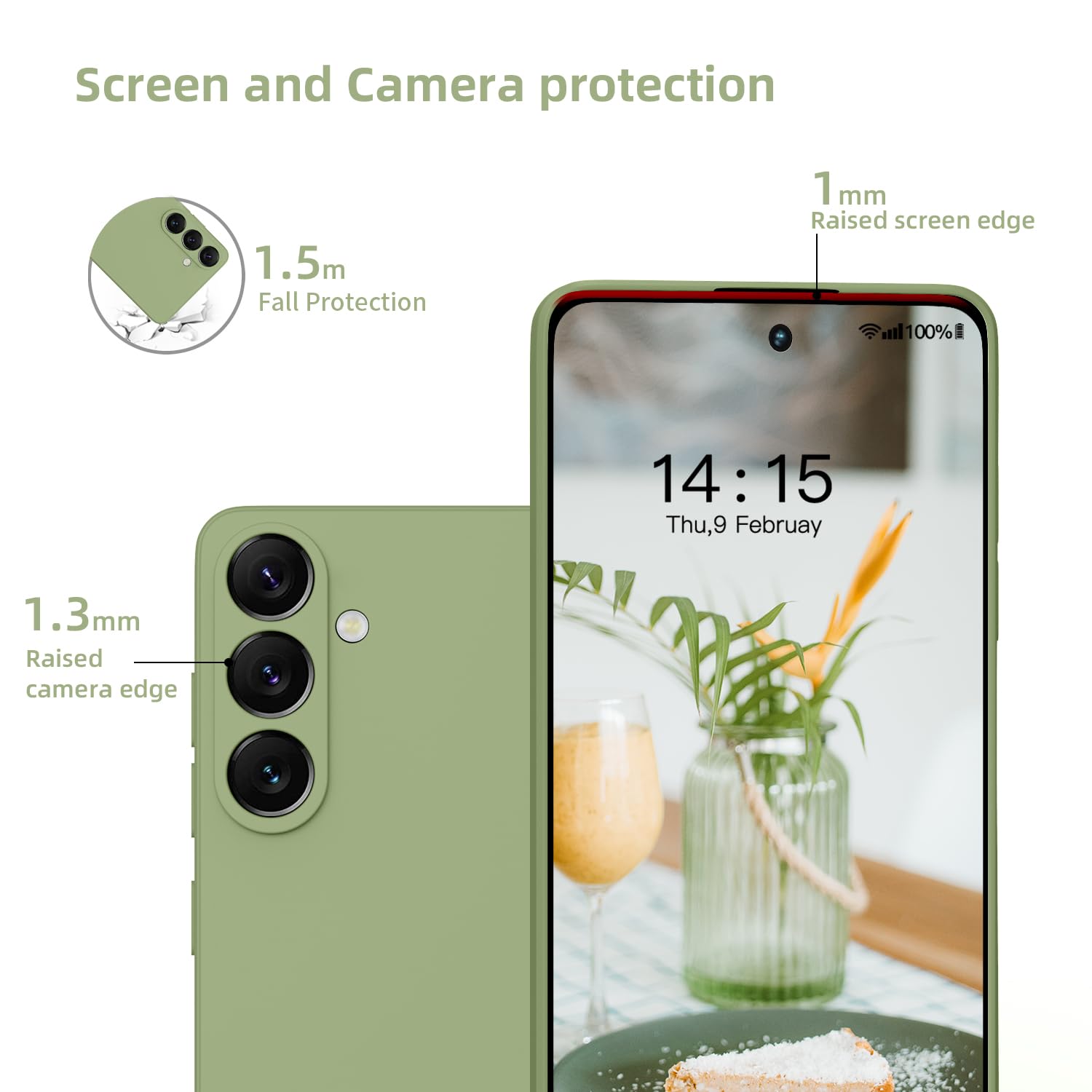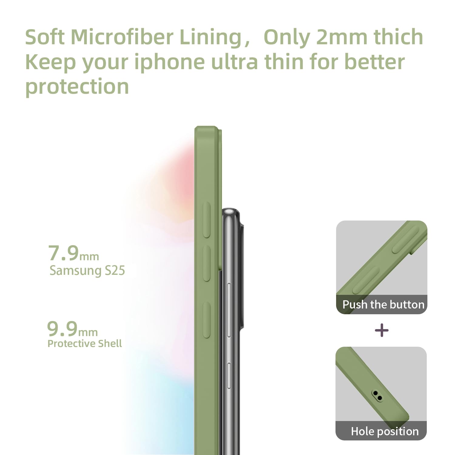 Samsung Galaxy S25 telefonikaaned, silikoonist, õhukesed, kriimustuskindlad, matcha roheline