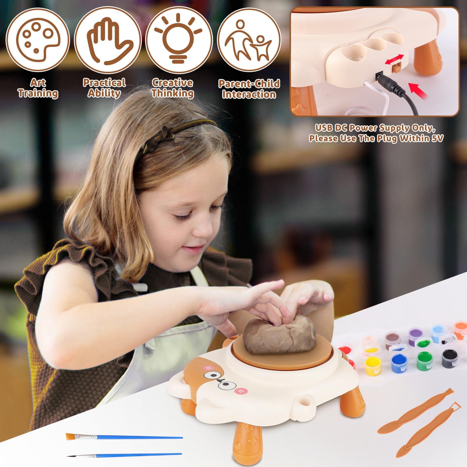 Savinõude valmistamise komplekt lastele, sisaldab pöörlevat ketast, savi jpm