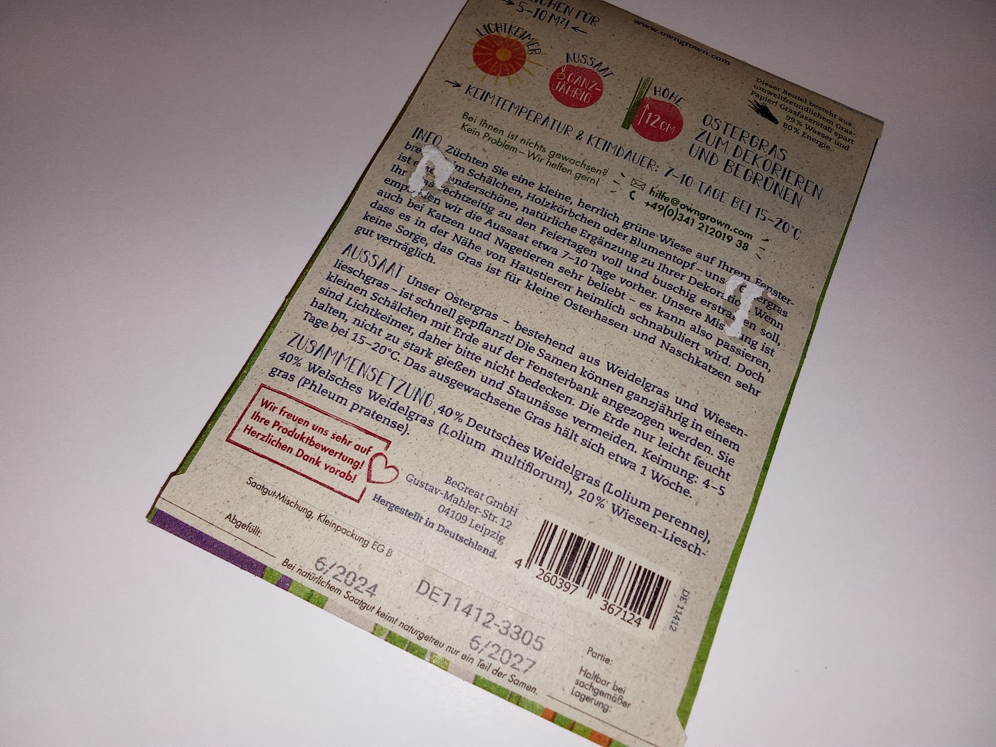 Seemned, lihavõttemuru – kassimuru (sisaldab ka catnippi) 10g (tekst pakendil on saksakeelne)