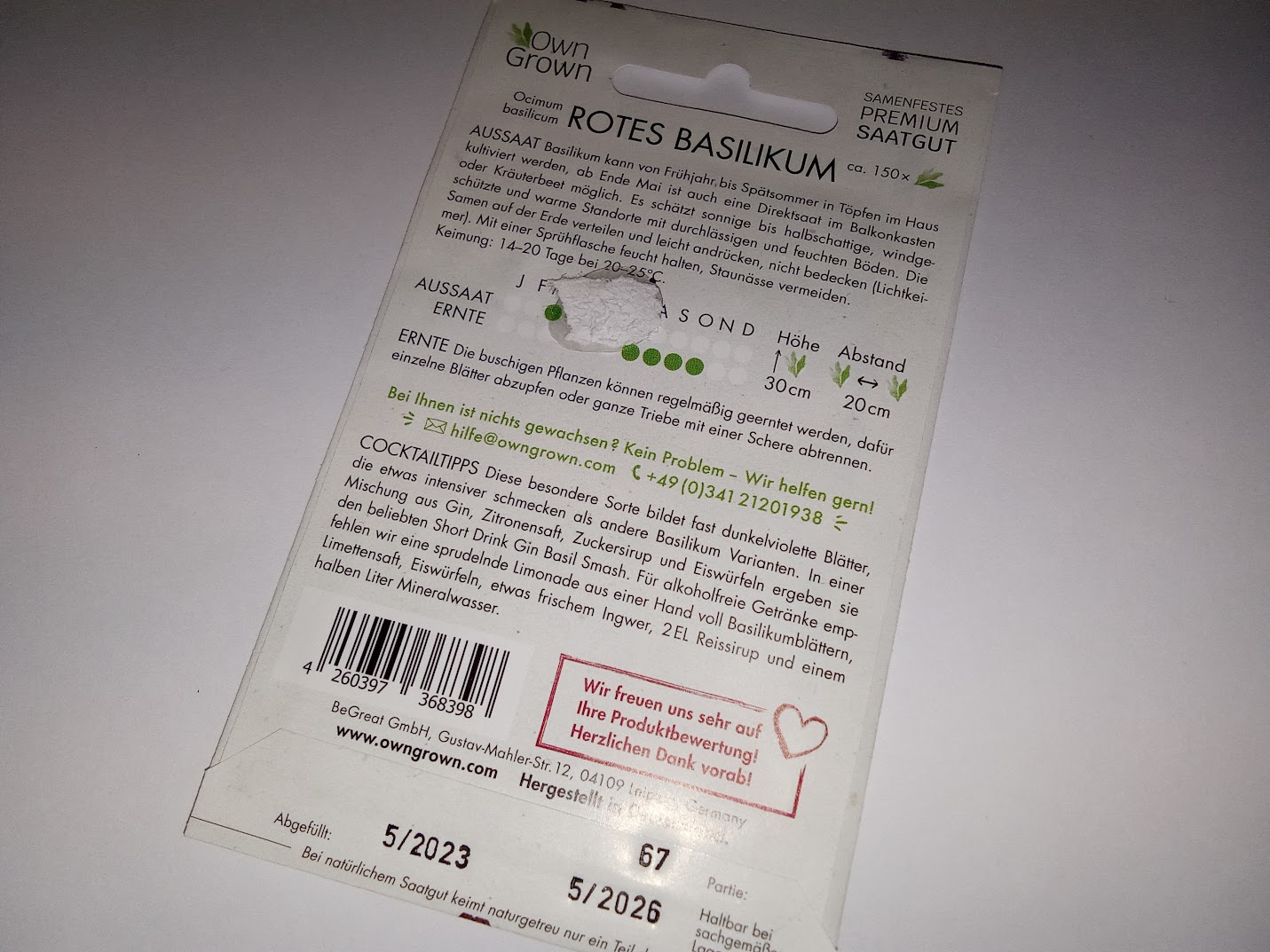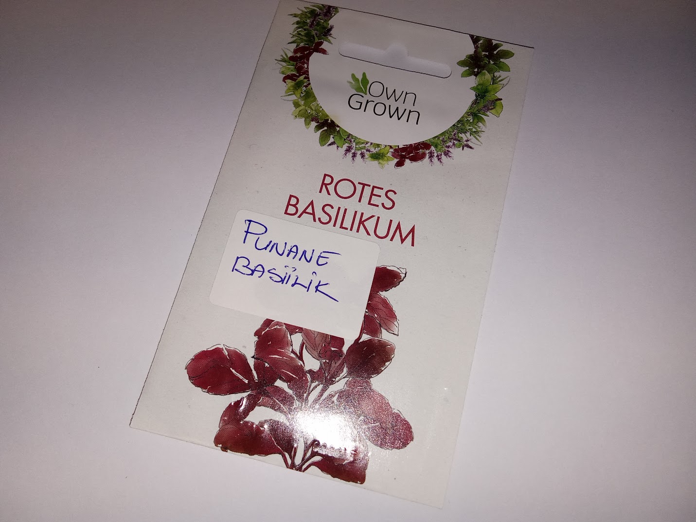 Seemned punane basiilik (tekst pakendil on saksakeelne)
