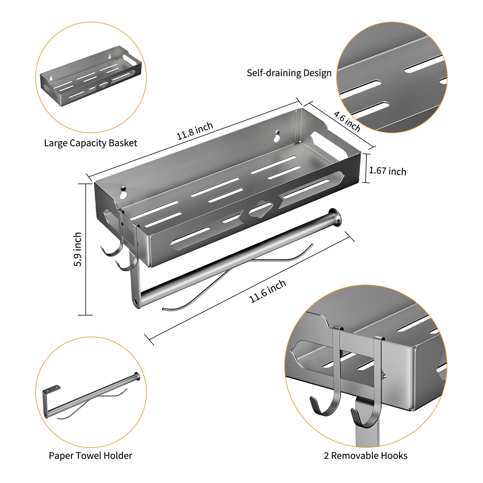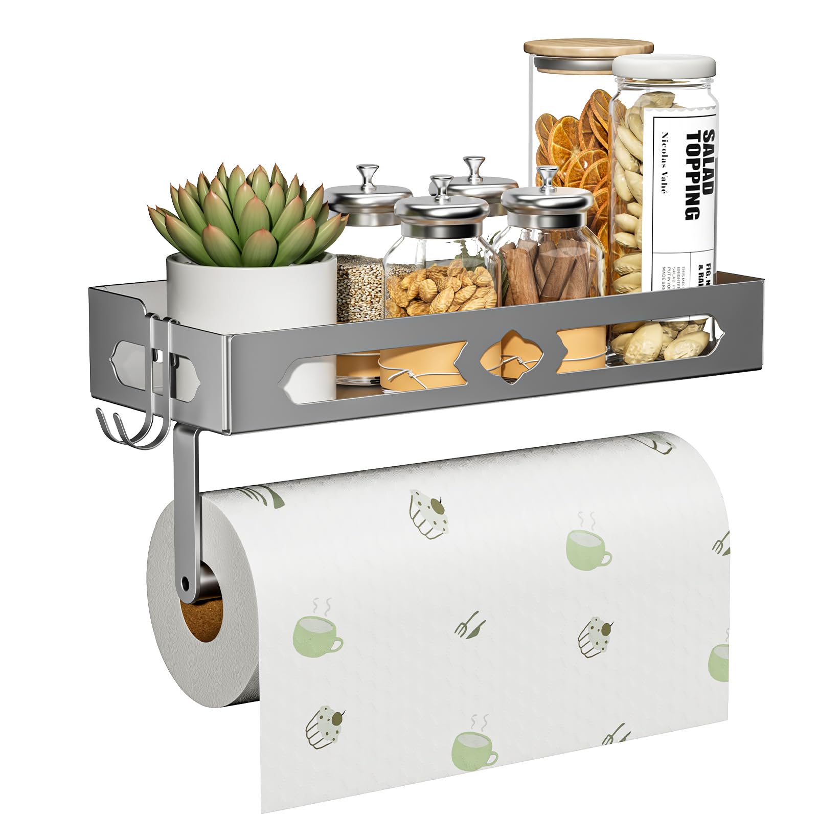 Seinale kinnitatav maitseaineriiul rullihoidikuga, hõbedane