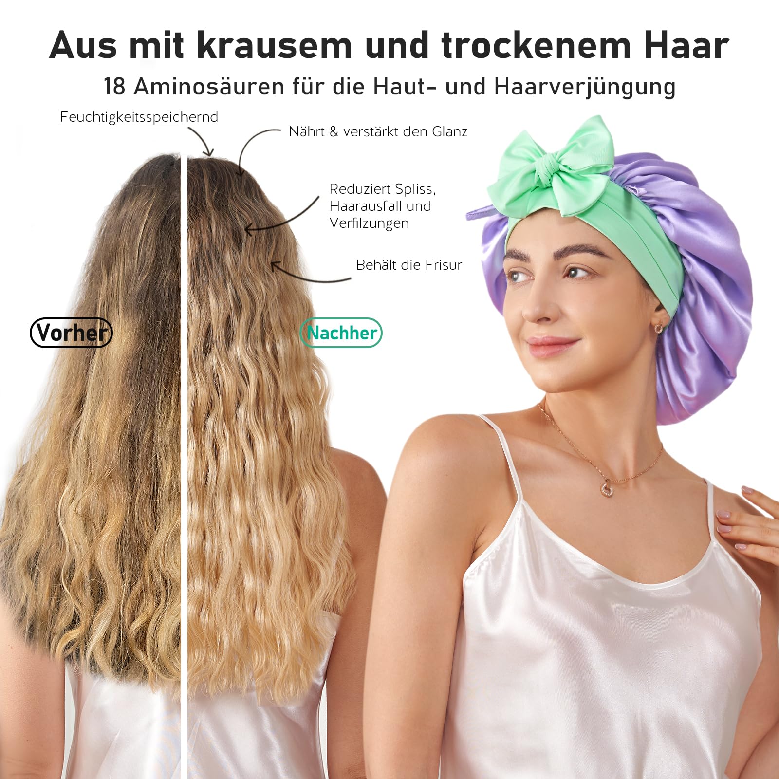 Siidist magamismüts naistele, lilla ja roheline