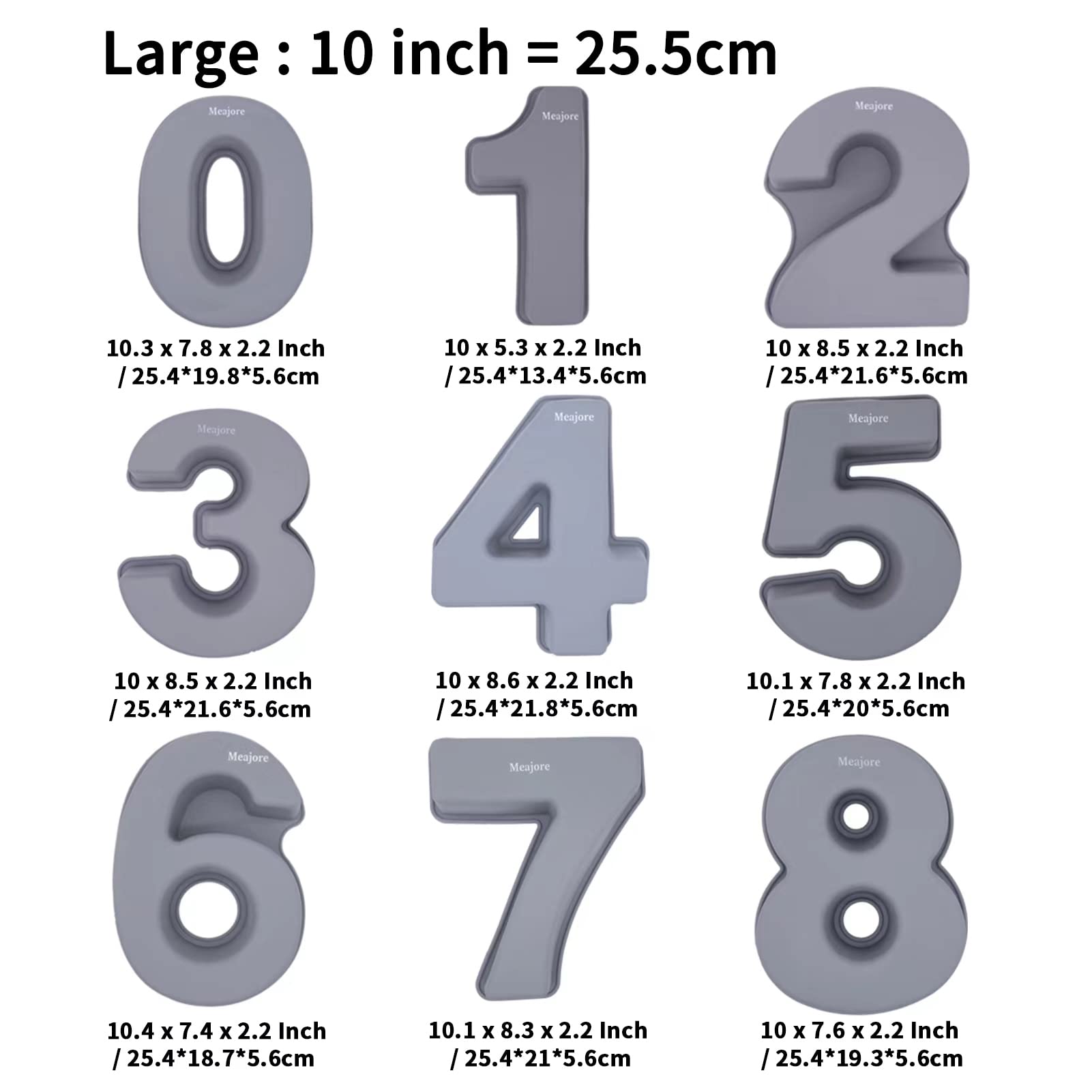 Silikoonist suured numbrikujulised koogivormid 0-8 (6 ja 9 on sama vorm)