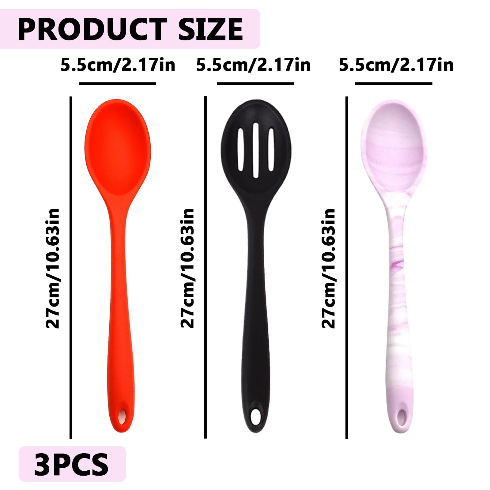 Silikoonist suurte toiduvalmistamislusikate komplekt, pika käepidemega (3tk, 27cm)