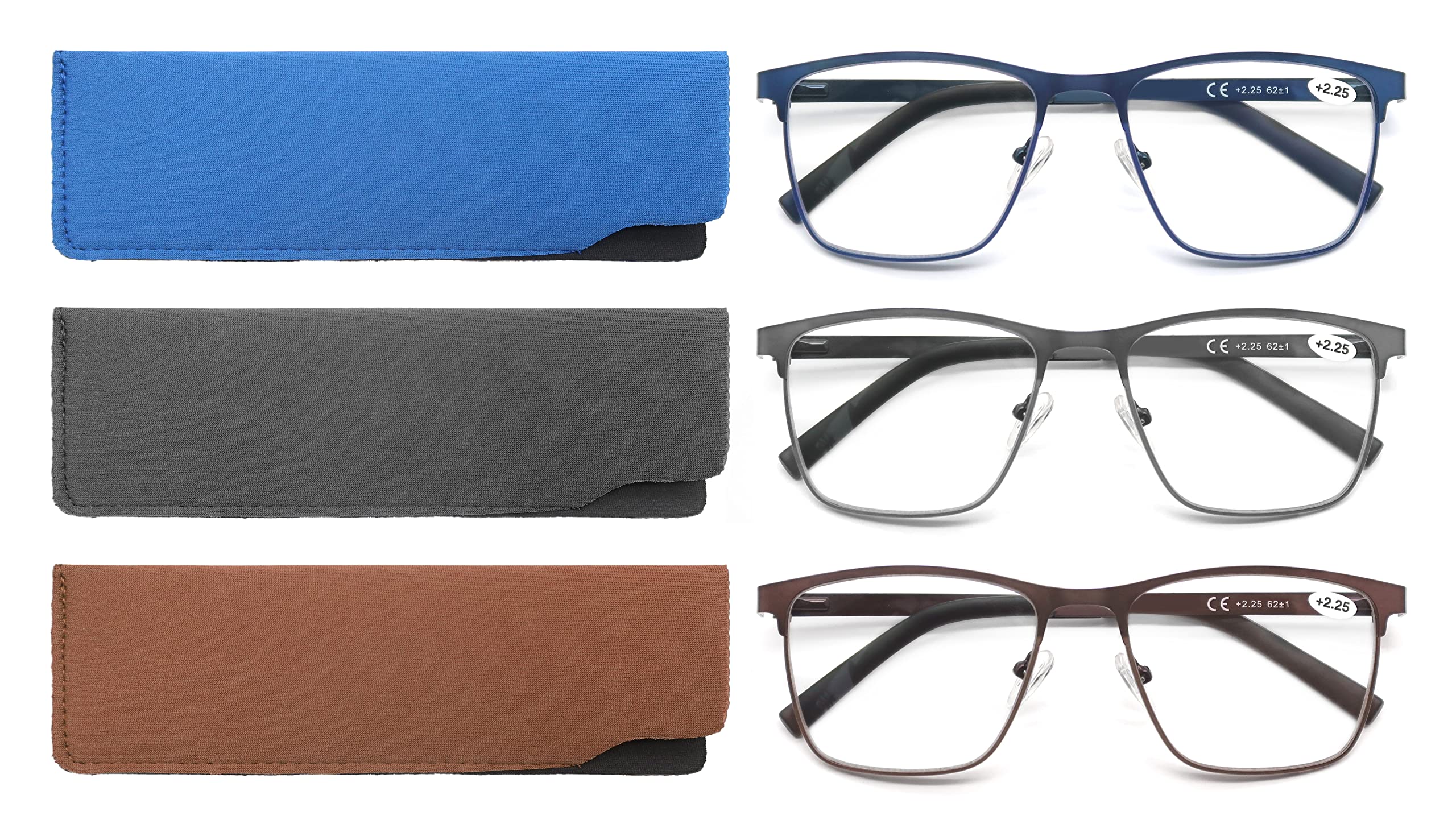 Sinise valguse filtriga lugemisprillid (3 paari) tugevusega +0.75