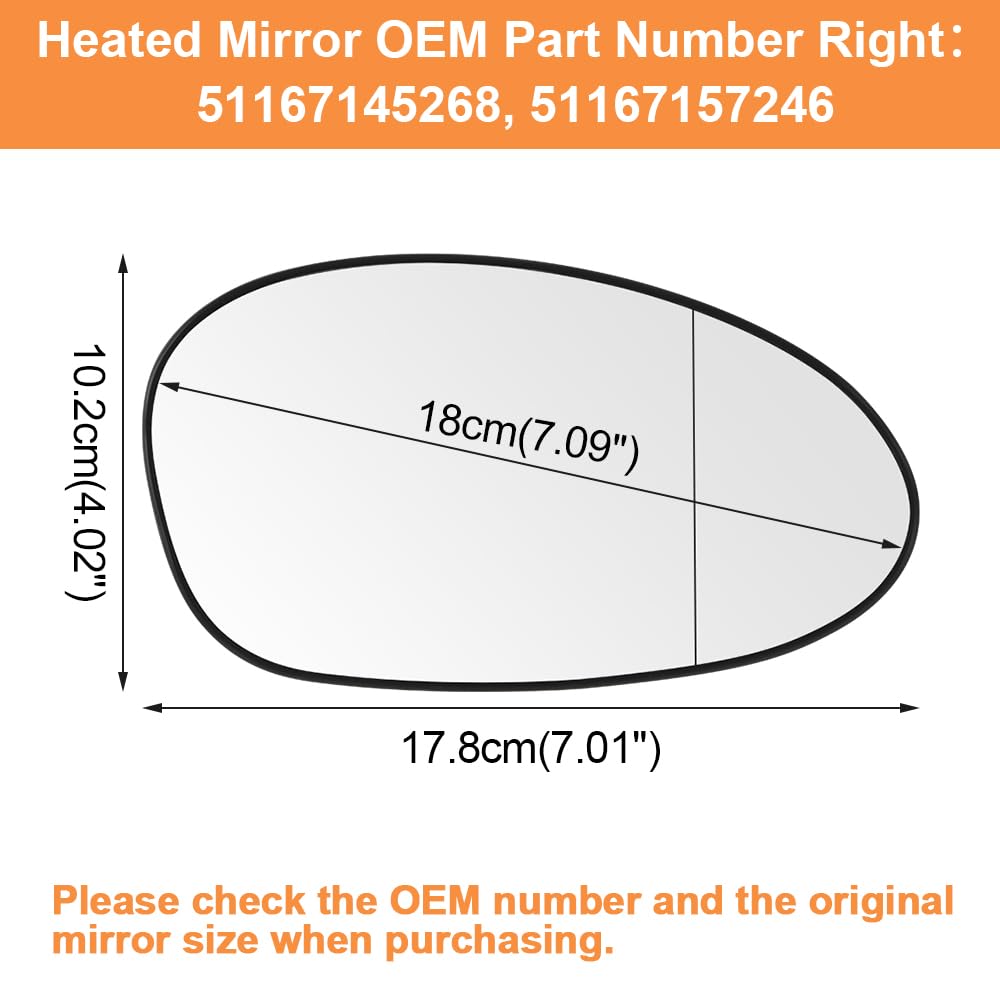 Soojendusega küljepeegli klaas BMW-le, parem (2005-2008) kogus