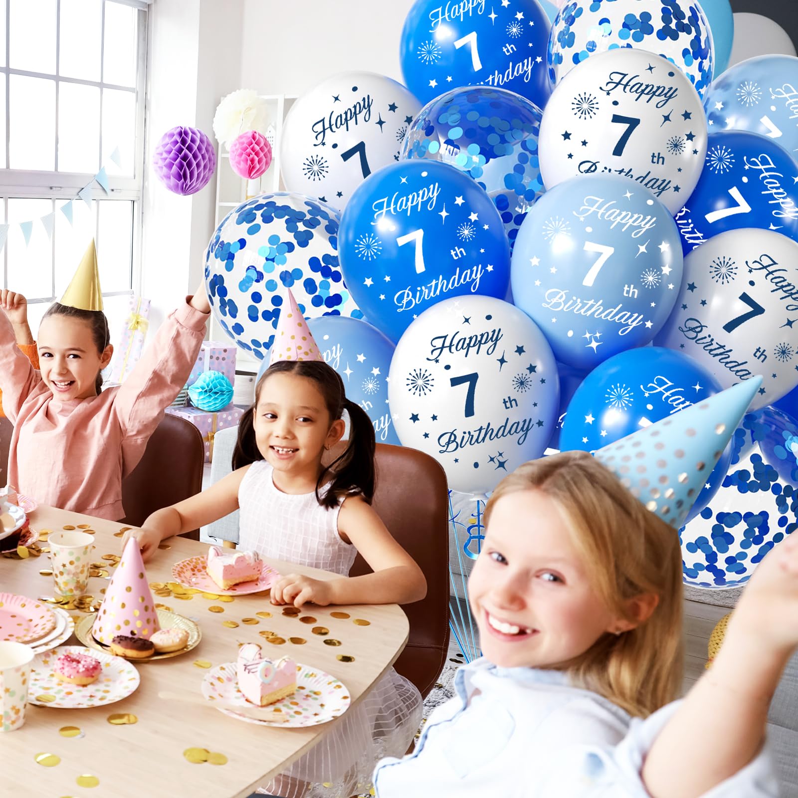 Sünnipäeva õhupallid konfettidega “9”, sinine ja valge (16tk)